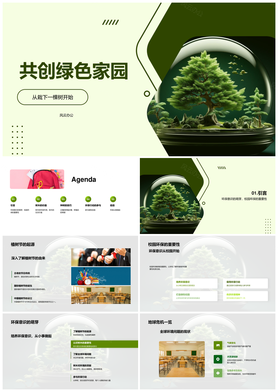 风云办公提供的校园植树节种树共建绿色家园PPT模板,下载格式为pptx,一共27页,作品中文字及图均可以修改和编辑,图片更改请在作品中右键图片并更换,文字修改请直接点击文字进行修改。
