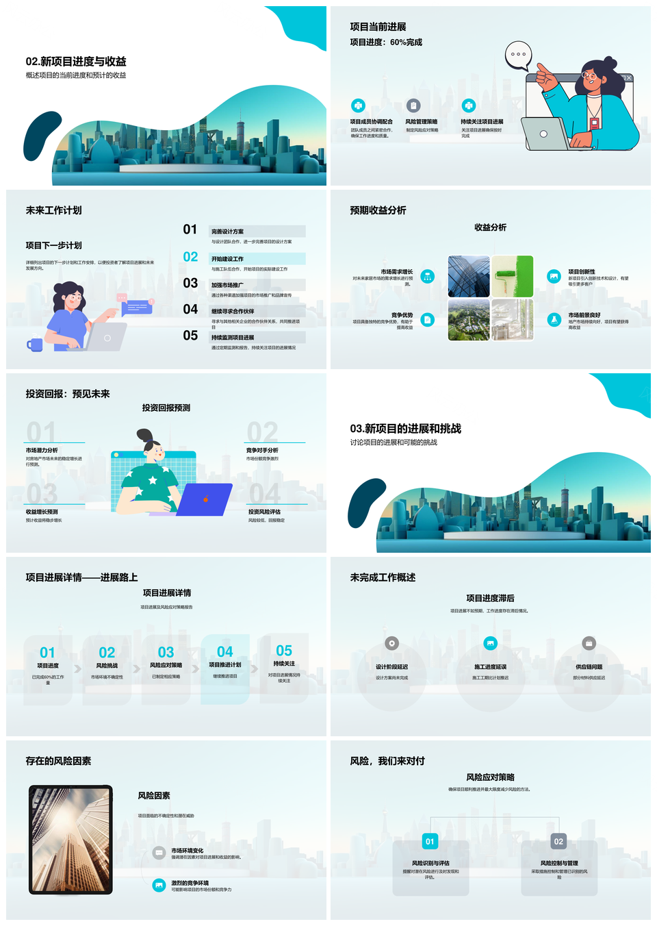 这是一张房地产摩天大楼新项目进展挑战与风险应对PPT模板,包含房地产、摩天大楼、新项目、进展、挑战、风险、应对等主题内容,也可用作房地产摩天大楼新项目进展挑战风险应对、房地产摩天大楼新项目进展、房地产摩天大楼新项目挑战、摩天大楼新项目进展挑战、新项目进展挑战风险应对、房地产摩天大楼风险应对、摩天大楼新项目风险应对、房地产新项目挑战风险应对、房地产摩天大楼新项目、摩天大楼新项目进展、新项目进展挑战、进展挑战风险应对、房地产摩天大楼、摩天大楼新项目、新项目进展等PPT场景使用。 风云办公提供的房地产摩天大楼新项目进展挑战与风险应对PPT模板,下载格式为pptx,一共28页,作品中文字及图均可以修改和编辑,图片更改请在作品中右键图片并更换,文字修改请直接点击文字进行修改。