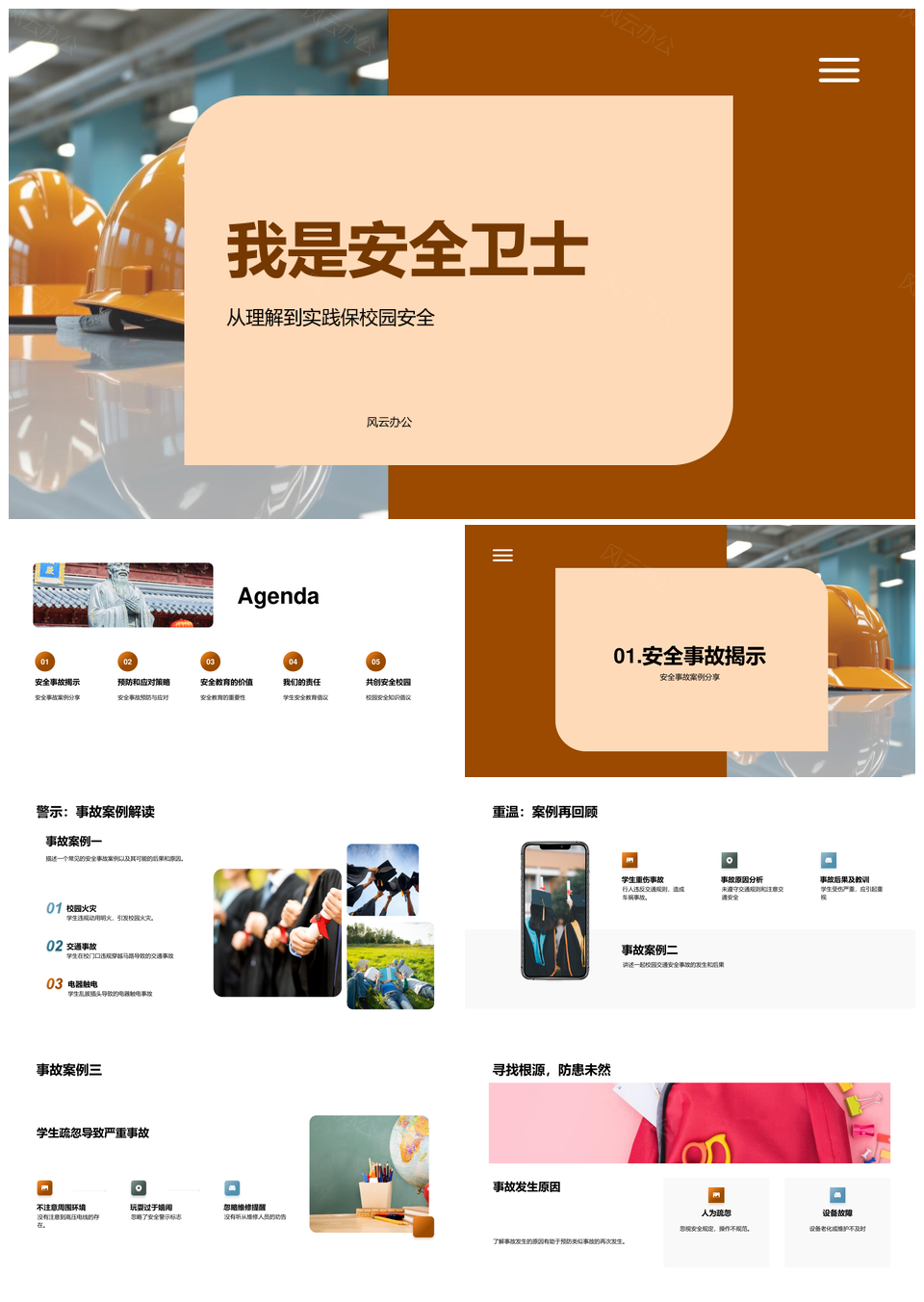 风云办公提供的校园安全卫士教育事故预防应对策略PPT模板,下载格式为pptx,一共33页,作品中文字及图均可以修改和编辑,图片更改请在作品中右键图片并更换,文字修改请直接点击文字进行修改。