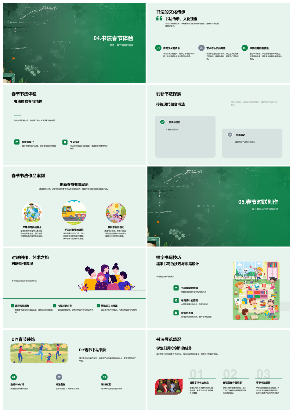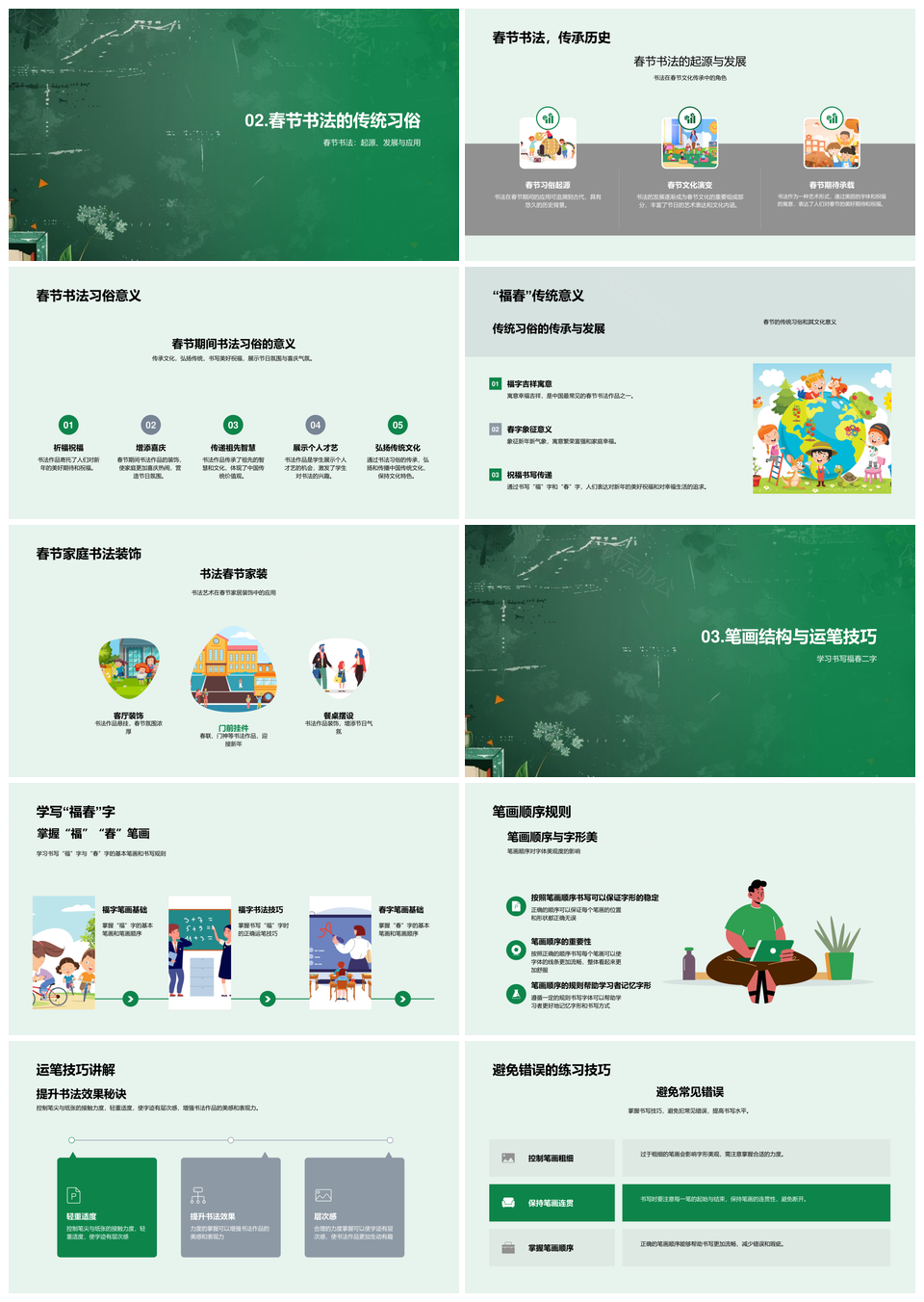 2025春节书法教学艺术文化书体笔法习俗福字PPT模板推荐