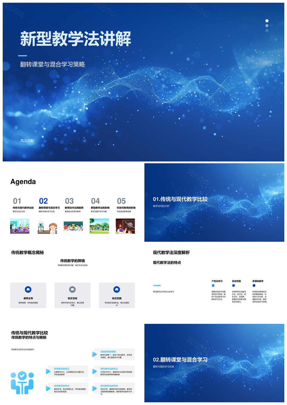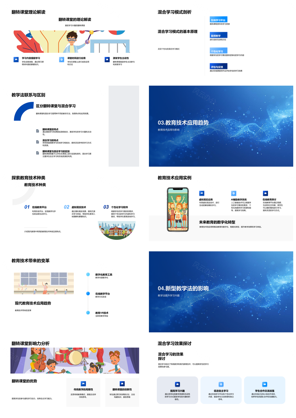 新型教学法翻转课堂混合学习教育技术发展PPT模板