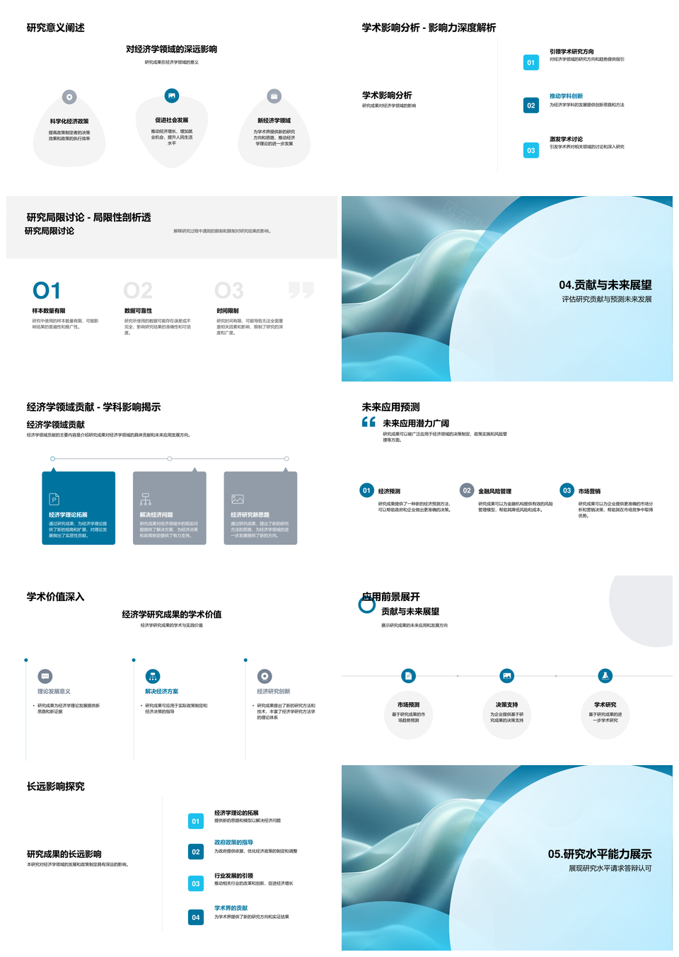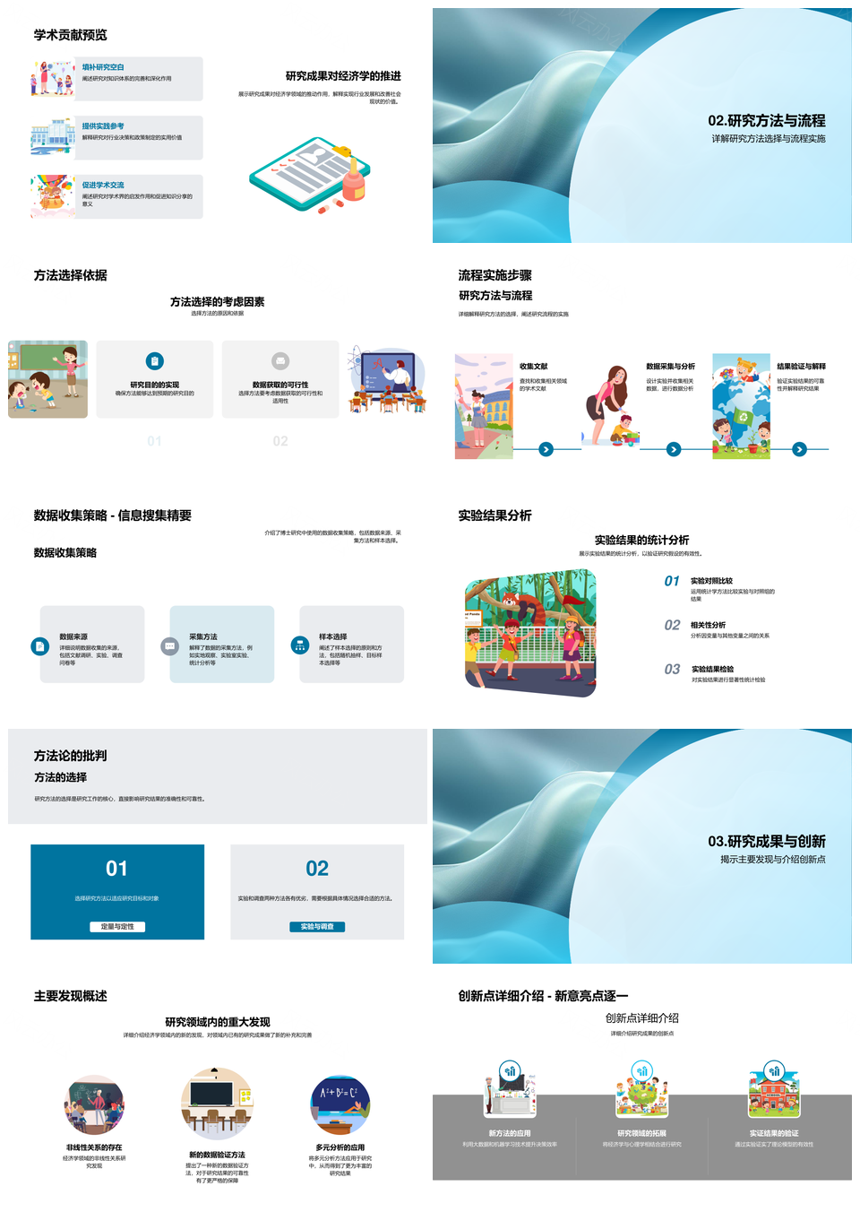 经济学答辩创新成果贡献研究方法流程数据实验PPT模板推荐