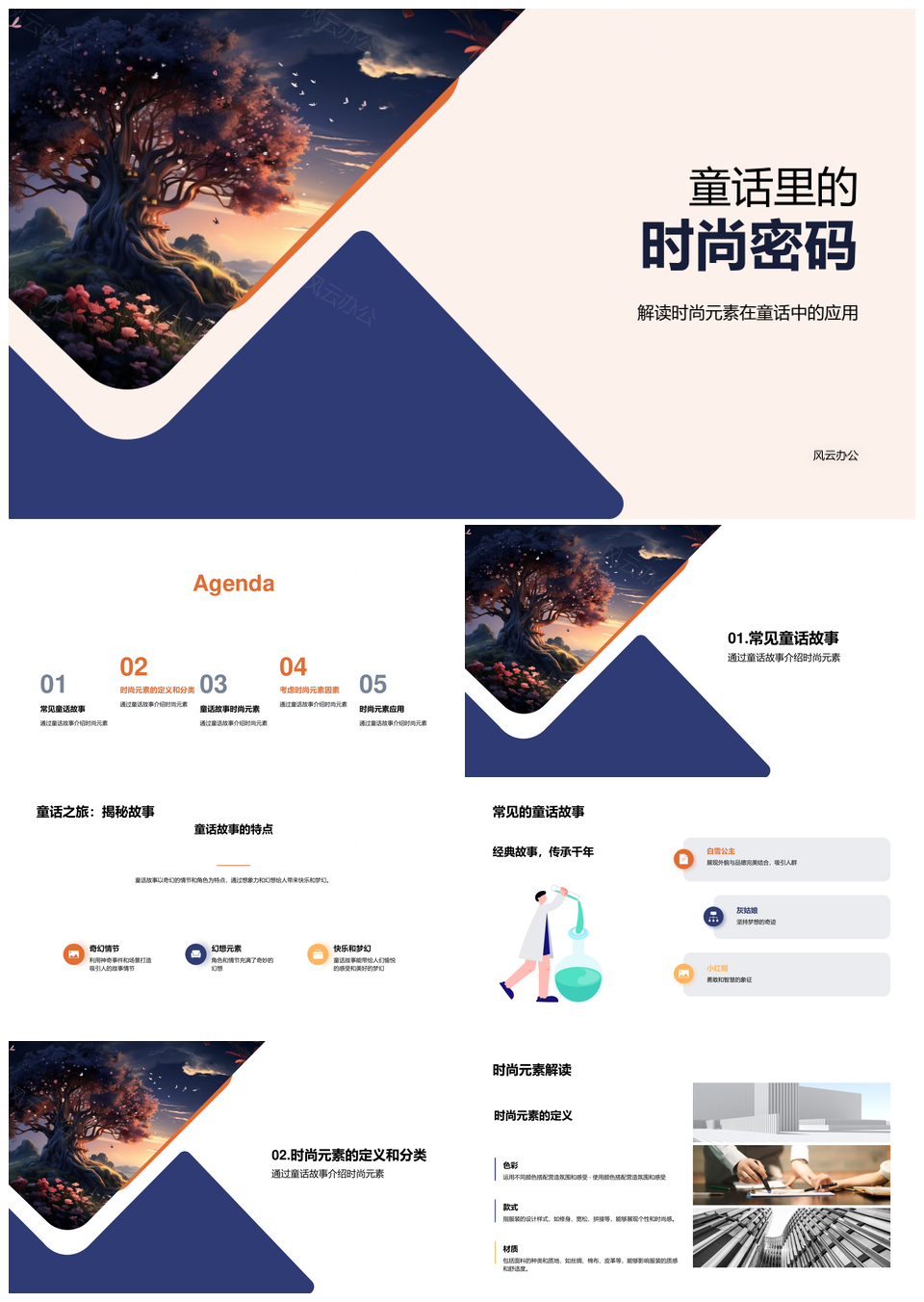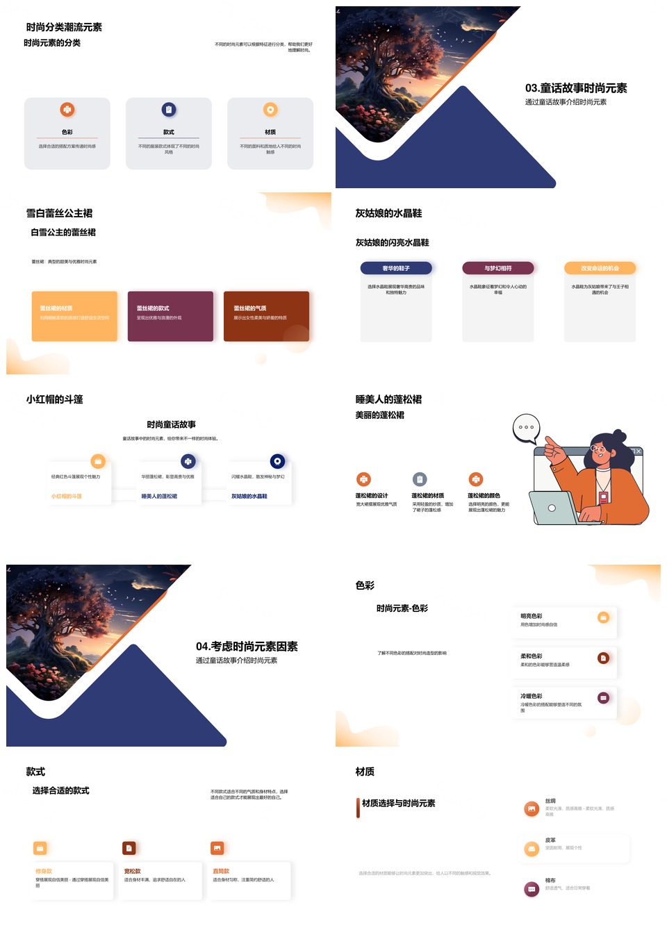 童话故事时尚元素与白雪公主风格解析PPT模板推荐