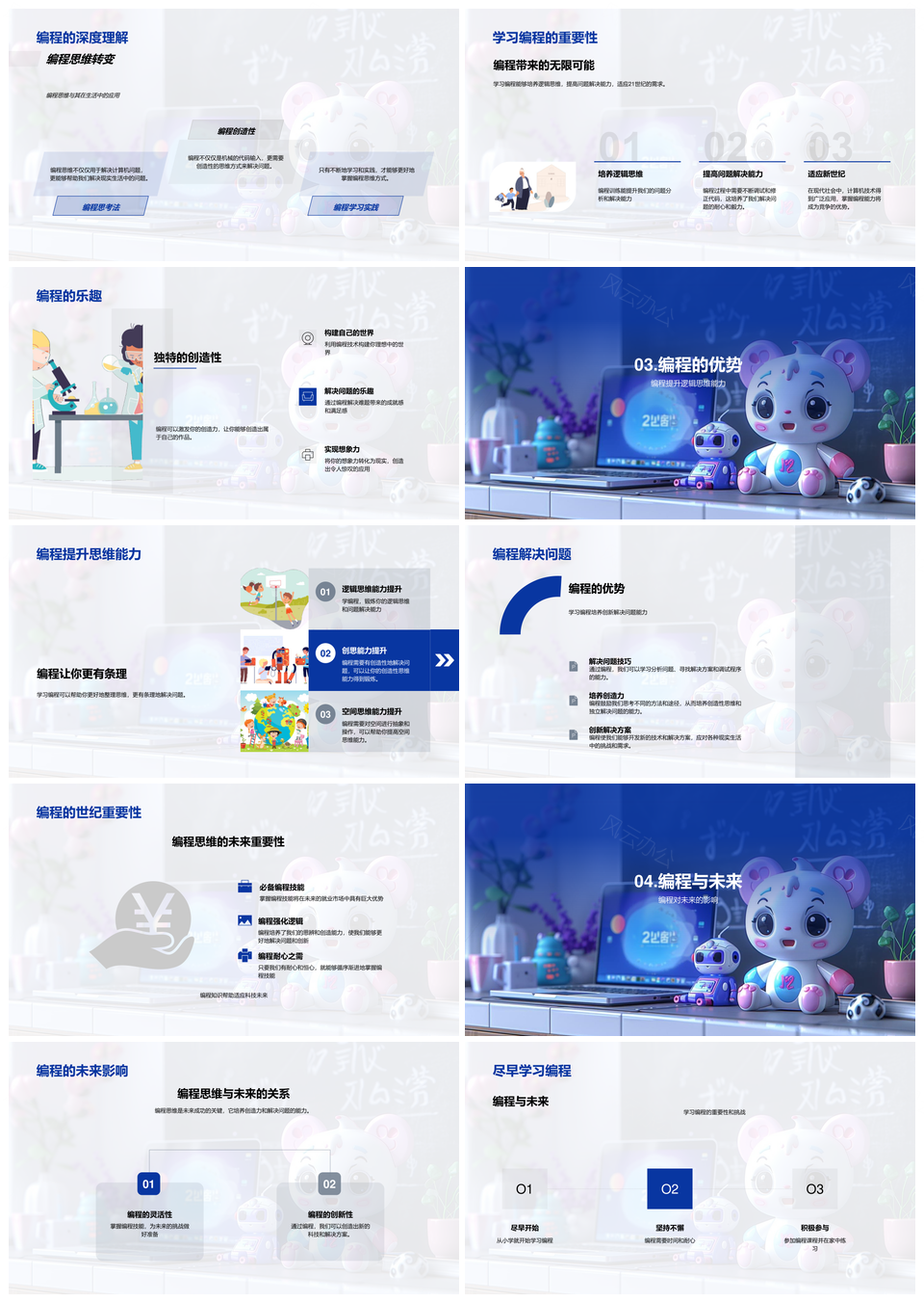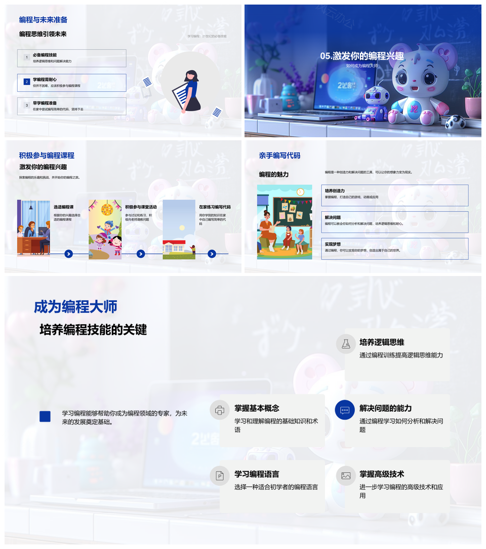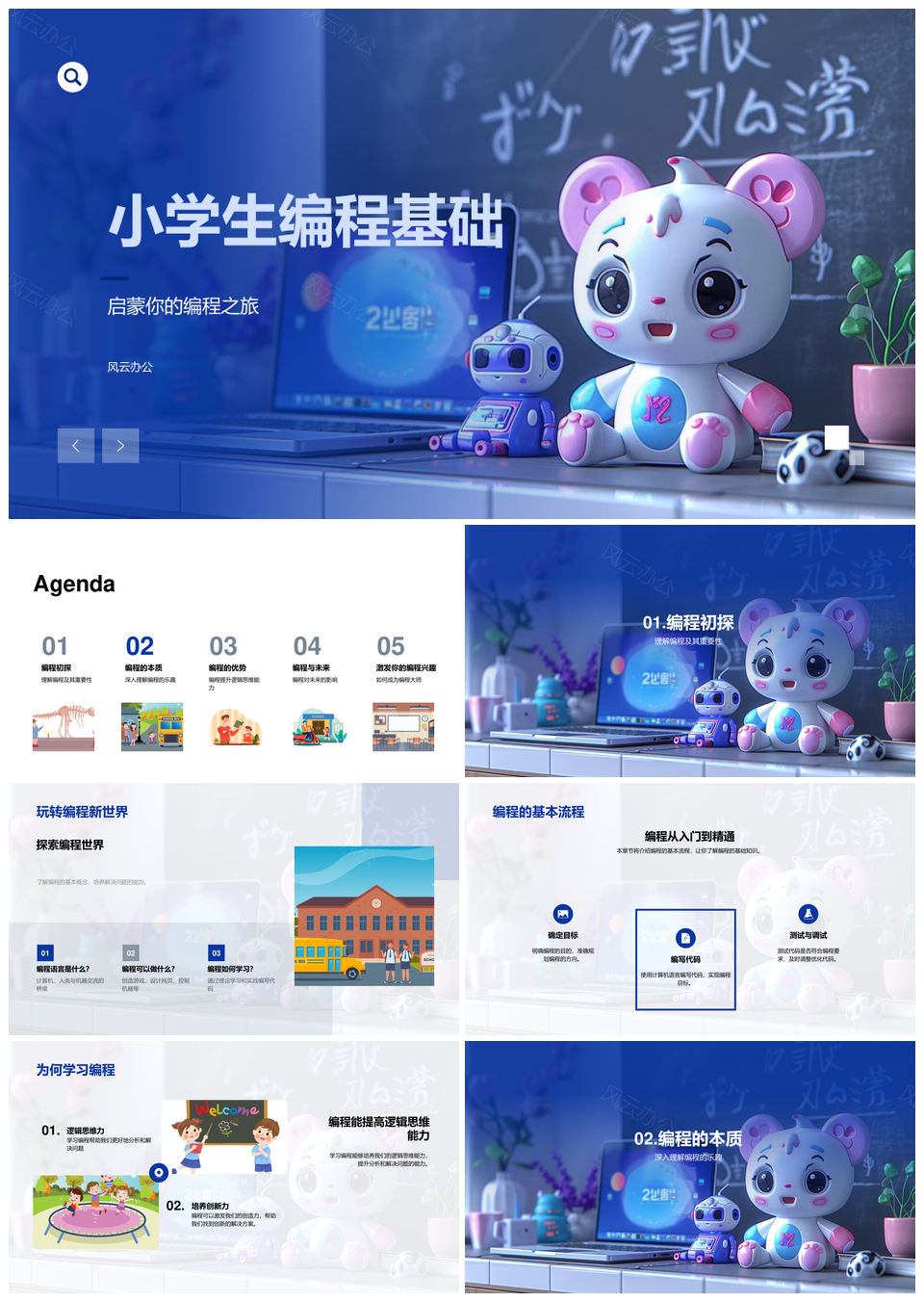风云办公提供的小学生编程基础培养逻辑解决问题能力PPT模板,下载格式为pptx,一共23页,作品中文字及图均可以修改和编辑,图片更改请在作品中右键图片并更换,文字修改请直接点击文字进行修改。