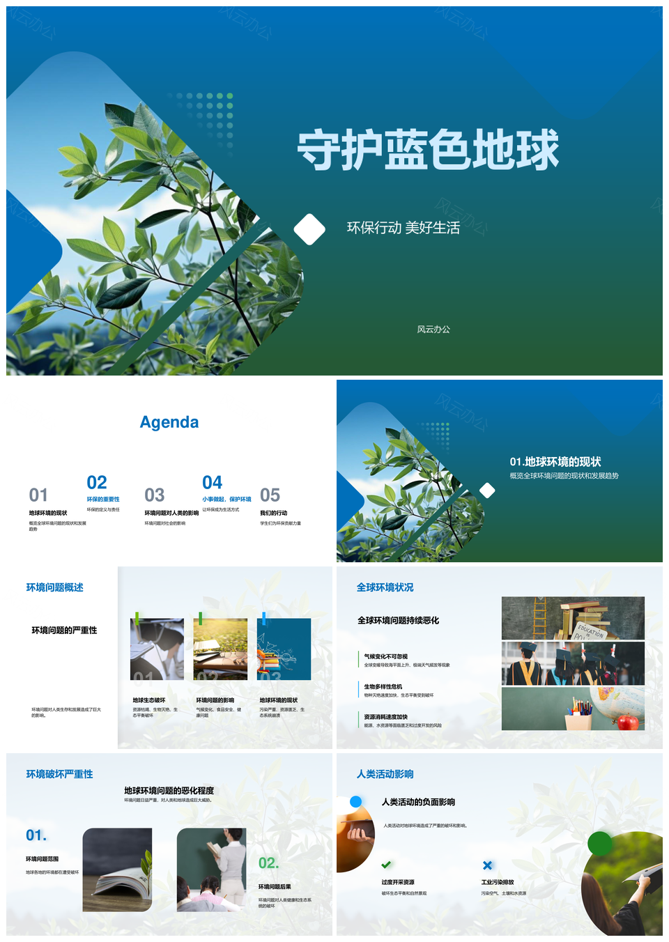 守护蓝色地球环保行动应对气候污染护生态促和谐PPT模板