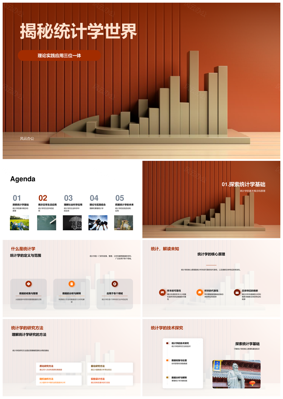 统计理论实践应用教育研究气象金融技术PPT模板推荐
