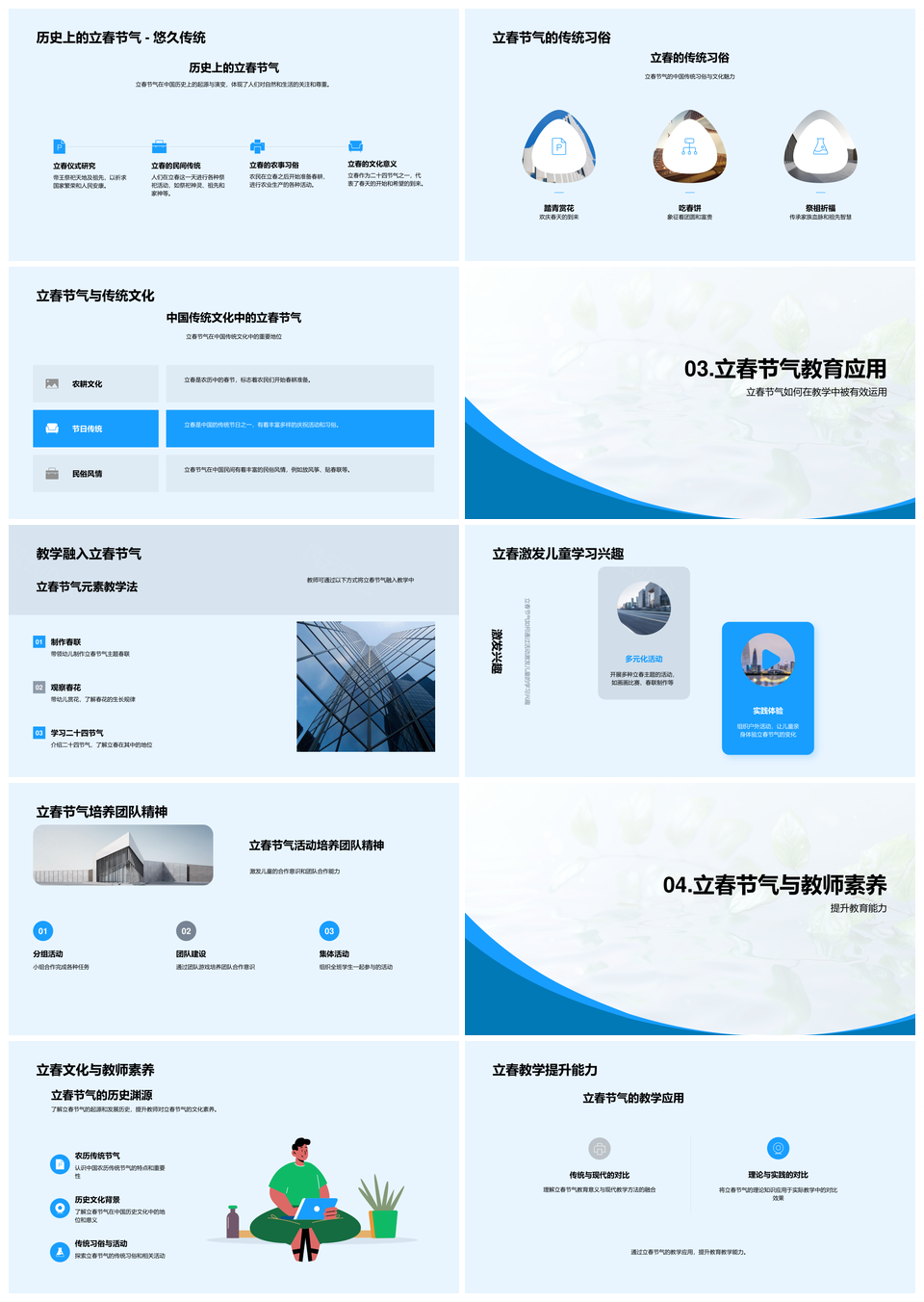 这是一张2025立春教师培训传统文化教学应用团队素养PPT模板,包含2025、立春、教师、培训、传统文化、教学、应用、团队、素养等主题内容,也可用作2025立春教师培训、立春教师培训传统文化、教师培训传统文化教学、培训传统文化教学应用、传统文化教学应用团队、教学应用团队素养、立春教师培训、教师培训传统文化、培训传统文化教学、传统文化教学应用、教学应用团队、应用团队素养、教师培训、传统文化教学、应用团队等PPT场景使用。 风云办公提供的2025立春教师培训传统文化教学应用团队素养PPT模板,下载格式为pptx,一共23页,作品中文字及图均可以修改和编辑,图片更改请在作品中右键图片并更换,文字修改请直接点击文字进行修改。