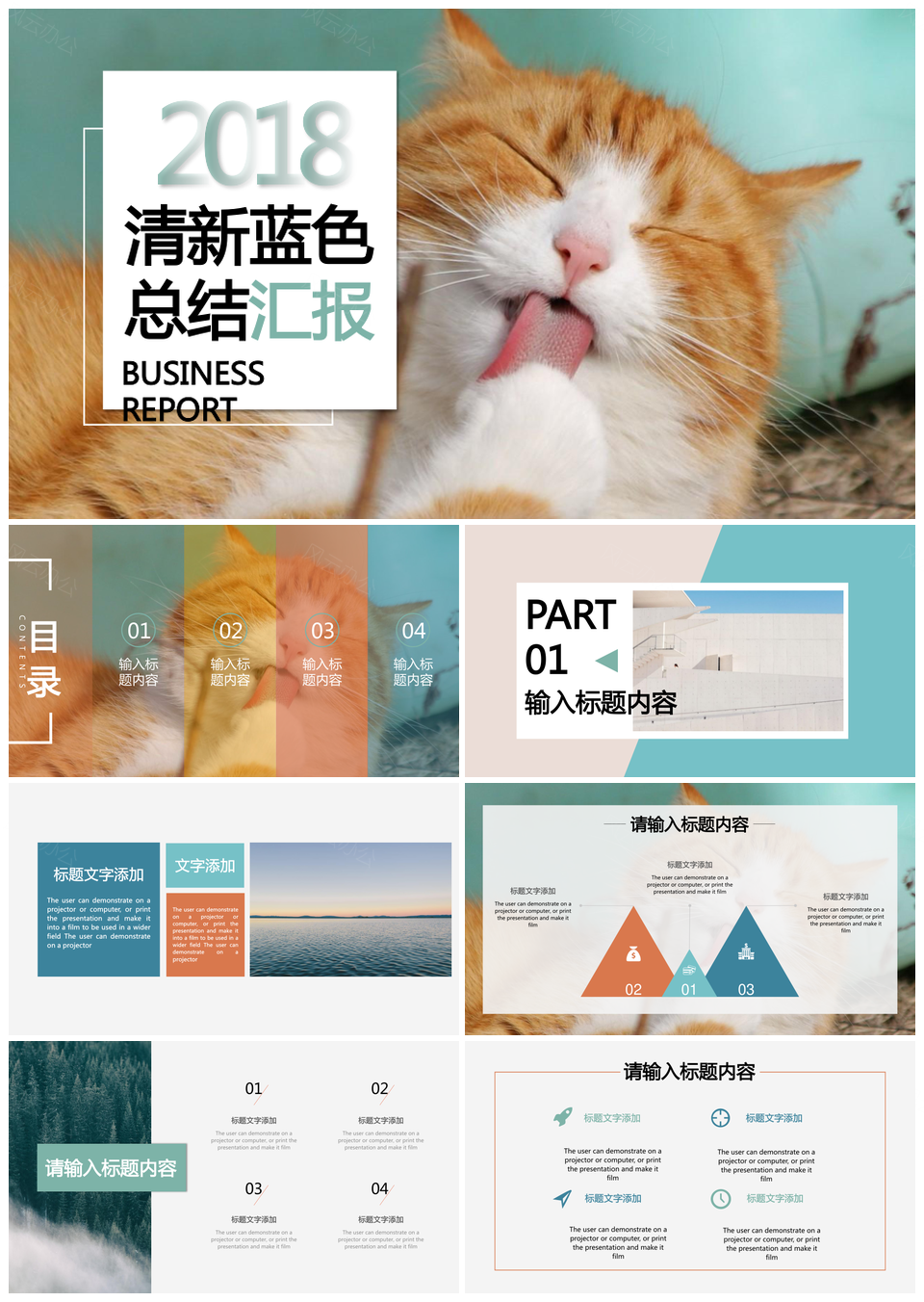 小清新蓝色总结汇报PPT