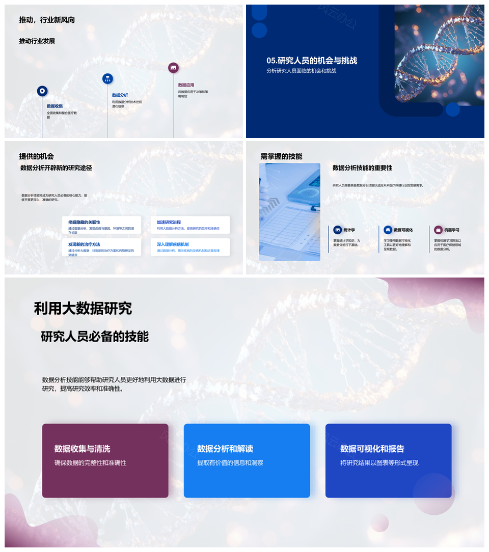 这是一张医疗大数据推动个性化治疗与DNA疾病预防PPT模板,包含医疗大数据、推动、个性化治疗、DNA、疾病预防等主题内容,也可用作医疗大数据推动个性化治疗、医疗大数据推动疾病预防、推动个性化治疗DNA疾病预防、大数据推动个性化治疗、医疗推动疾病预防、大数据推动疾病预防、医疗大数据个性化治疗、推动DNA疾病预防、个性化治疗DNA疾病预防、医疗大数据、个性化治疗、DNA疾病预防、大数据推动、推动疾病预防、医疗推动等PPT场景使用。 风云办公提供的医疗大数据推动个性化治疗与DNA疾病预防PPT模板,下载格式为pptx,一共23页,作品中文字及图均可以修改和编辑,图片更改请在作品中右键图片并更换,文字修改请直接点击文字进行修改。
