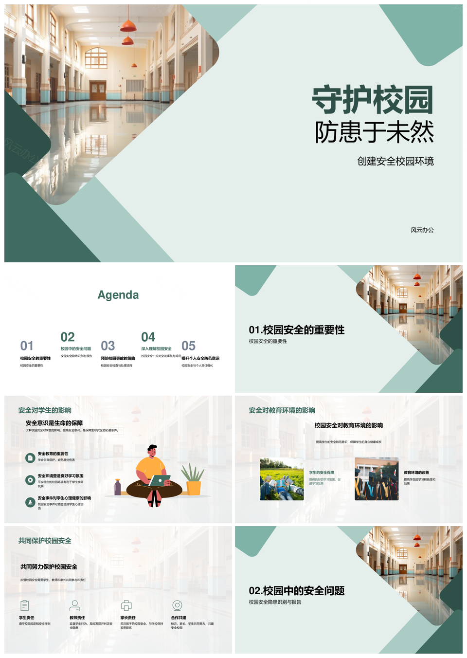 风云办公提供的家校师生共筑平安校园查隐患PPT模板,下载格式为pptx,一共23页,作品中文字及图均可以修改和编辑,图片更改请在作品中右键图片并更换,文字修改请直接点击文字进行修改。