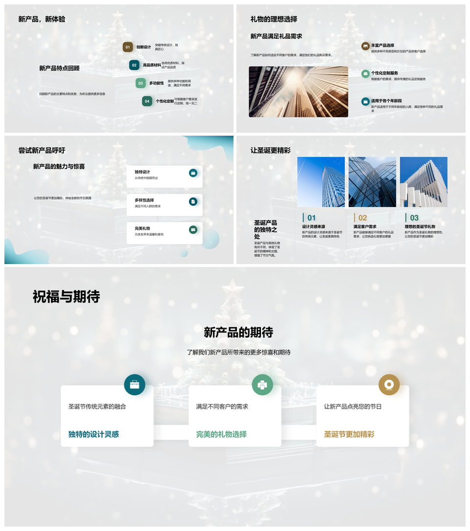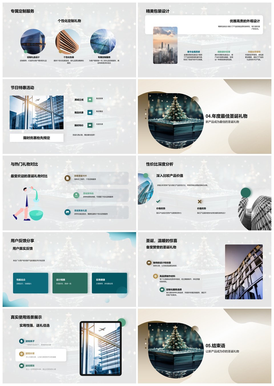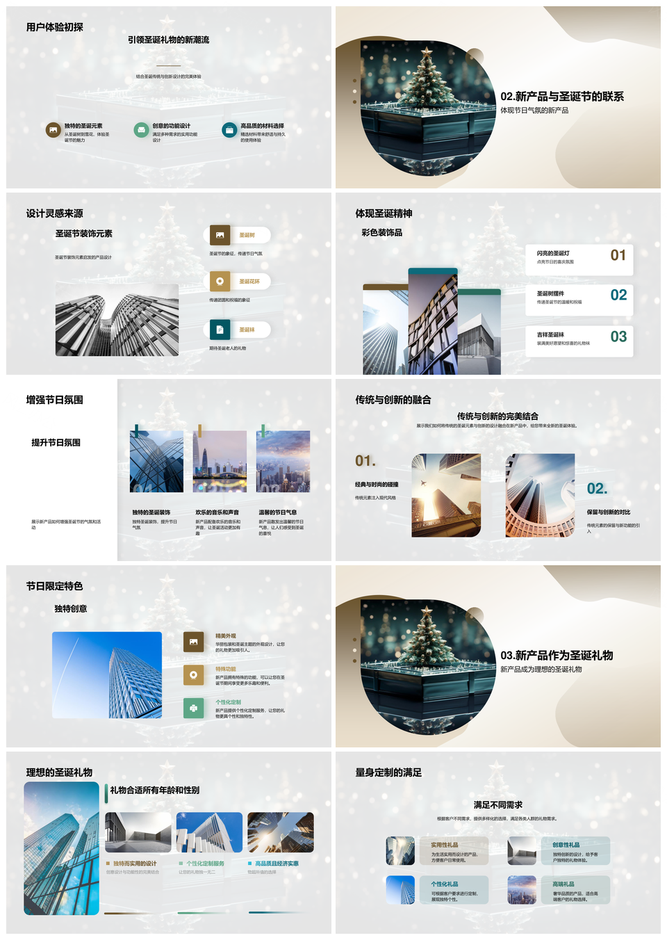 这是一张圣诞礼物新品独特设计灵感节日气氛推荐PPT模板,包含圣诞礼物、新品、独特设计、灵感、节日气氛、推荐等主题内容,也可用作圣诞礼物新品独特设计灵感、圣诞礼物新品独特、圣诞礼物新品、新品独特设计灵感节日气氛、新品独特设计灵感、新品独特、独特设计灵感节日气氛推荐、独特设计灵感节日气氛、独特设计灵感、设计灵感节日气氛推荐、设计灵感节日气氛、节日气氛推荐、圣诞礼物推荐、圣诞礼物设计灵感、独特节日气氛推荐等PPT场景使用。 风云办公提供的圣诞礼物新品独特设计灵感节日气氛推荐PPT模板,下载格式为pptx,一共33页,作品中文字及图均可以修改和编辑,图片更改请在作品中右键图片并更换,文字修改请直接点击文字进行修改。