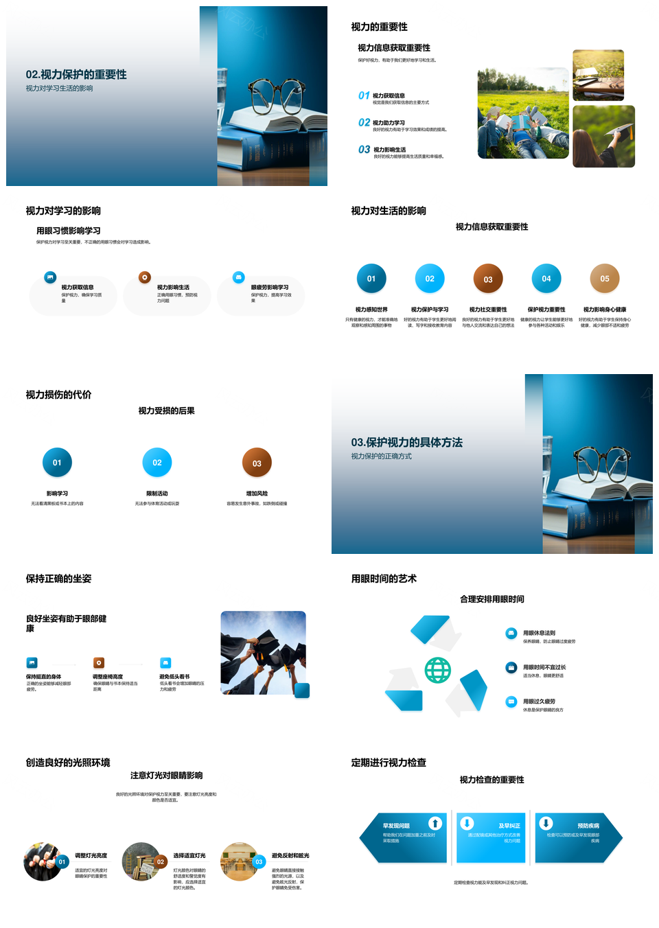 二年级学生视力保护安全教育正确坐姿合理用眼良好光照PPT模板推荐
