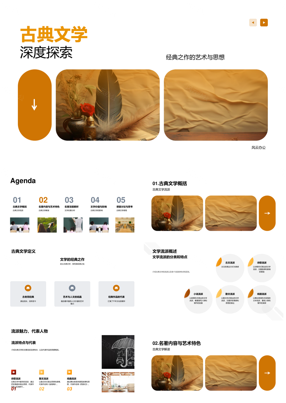 风云办公提供的古典文学名著艺术思想流派探析PPT模板,下载格式为pptx,一共23页,作品中文字及图均可以修改和编辑,图片更改请在作品中右键图片并更换,文字修改请直接点击文字进行修改。