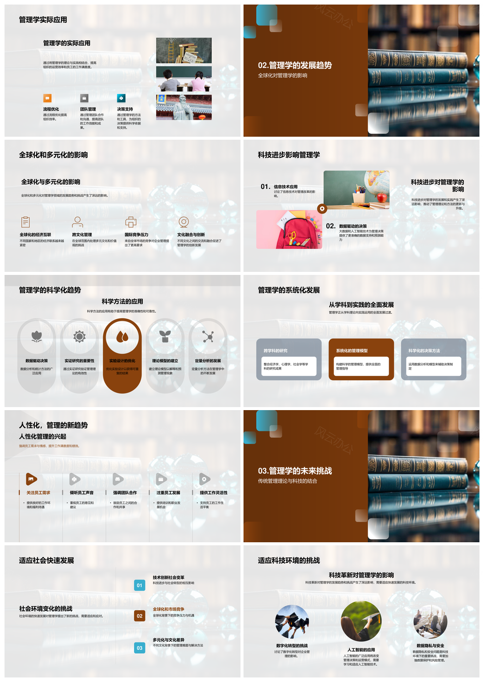 管理学演进挑战与全球化科技人性化趋势PPT模板推荐