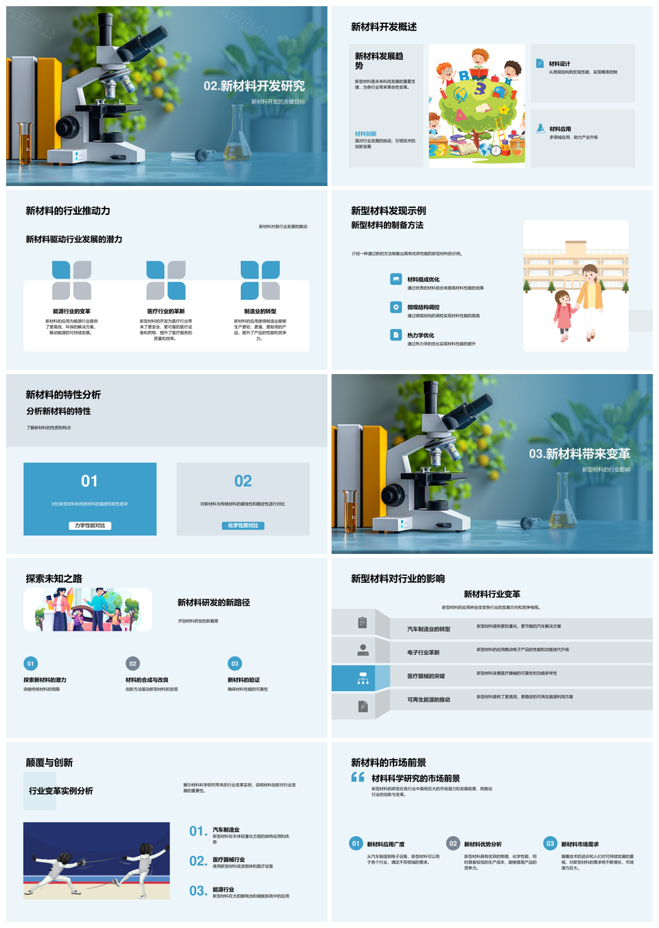 材料科学新材料特性应用与行业变革研究PPT模板推荐