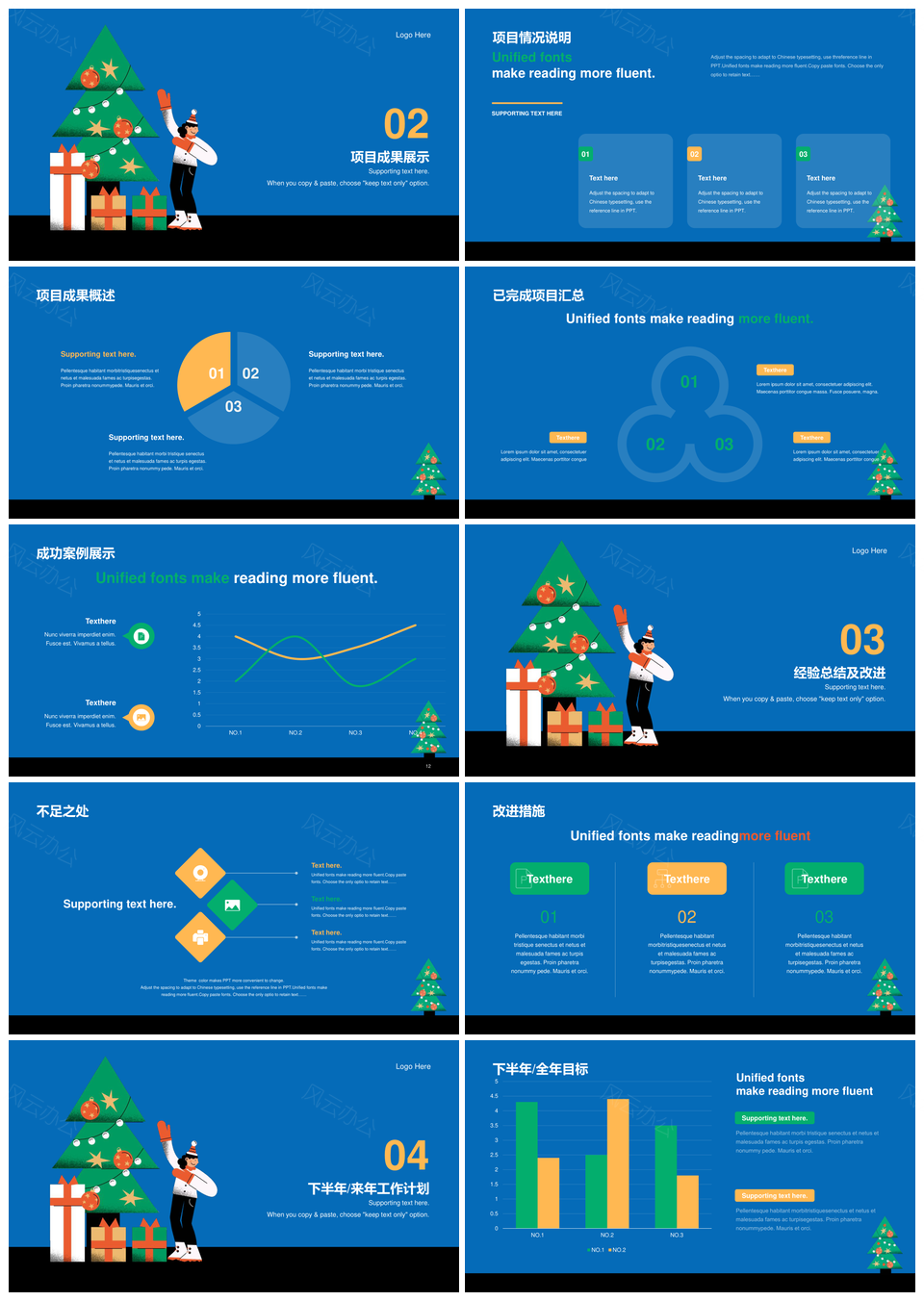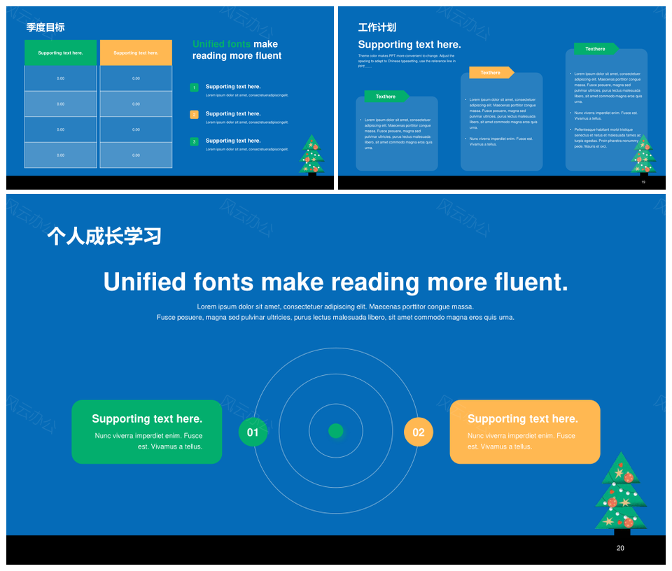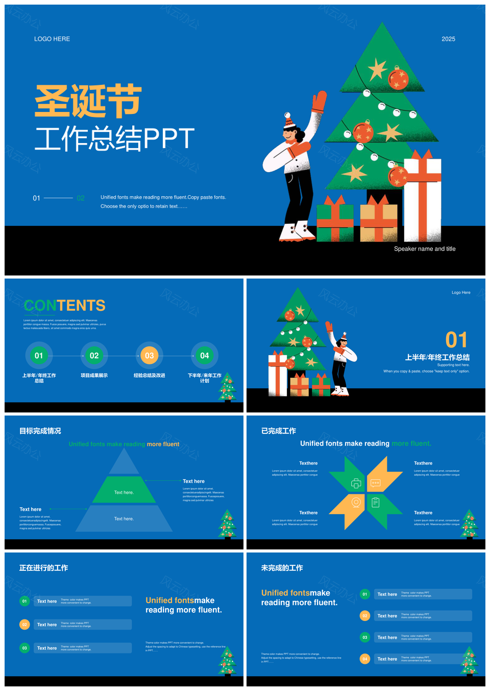 风云办公提供的2025蓝绿黄圣诞礼物插画工作总结PPT模板,下载格式为pptx,一共21页,作品中文字及图均可以修改和编辑,图片更改请在作品中右键图片并更换,文字修改请直接点击文字进行修改。