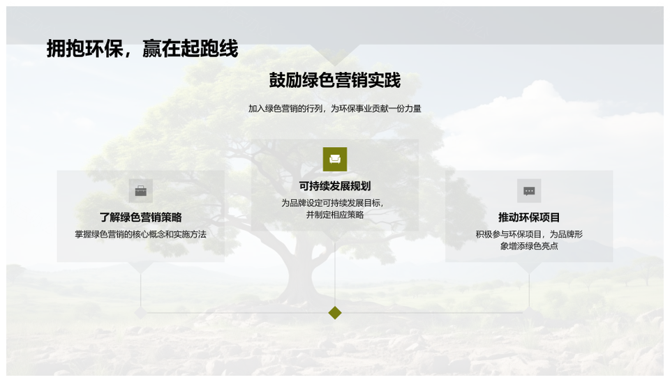 这是一张绿色营销联动植树节策略提升品牌忠诚度PPT模板,包含绿色营销、联动、植树节、策略、提升、品牌忠诚度等主题内容,也可用作绿色营销联动植树节、联动植树节策略提升、策略提升品牌忠诚度、绿色营销联动策略、联动植树节策略、植树节策略提升、提升品牌忠诚度、绿色营销品牌忠诚度、联动策略提升品牌、策略提升品牌、绿色营销、营销联动、联动植树节、植树节策略、策略提升等PPT场景使用。 风云办公提供的绿色营销联动植树节策略提升品牌忠诚度PPT模板,下载格式为pptx,一共29页,作品中文字及图均可以修改和编辑,图片更改请在作品中右键图片并更换,文字修改请直接点击文字进行修改。