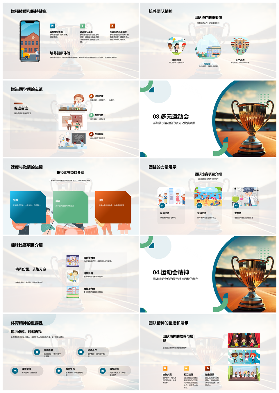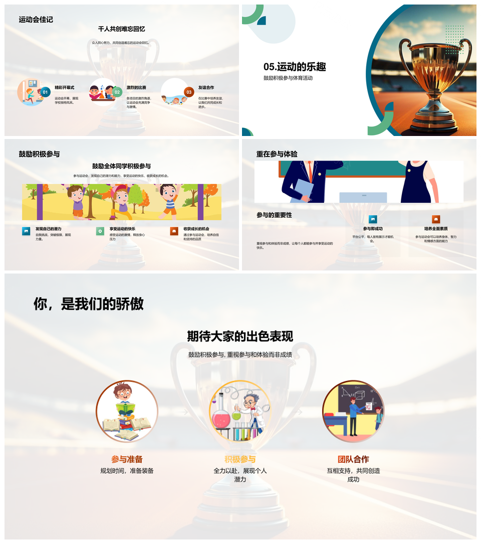 这是一张运动会体育团队精神田径趣味竞技强体魄PPT模板,包含运动会、体育、团队、精神、田径、趣味、竞技、强体魄等主题内容,也可用作运动会田径趣味竞技强体魄、运动会体育团队精神、体育团队精神田径趣味、团队精神田径趣味竞技、趣味竞技强体魄田径、田径趣味竞技强体魄、运动会田径趣味竞技、运动会体育竞技强体魄、团队精神趣味竞技、田径竞技强体魄、体育团队精神、运动会团队精神、趣味竞技田径、竞技强体魄、体育田径竞技等PPT场景使用。 风云办公提供的运动会体育团队精神田径趣味竞技强体魄PPT模板,下载格式为pptx,一共23页,作品中文字及图均可以修改和编辑,图片更改请在作品中右键图片并更换,文字修改请直接点击文字进行修改。