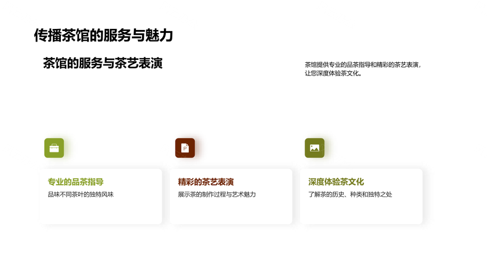 这是一张茶馆服务特色茶文化魅力绿茶红茶茶壶PPT模板,包含茶馆服务、特色、茶文化、魅力、绿茶、红茶、茶壶等主题内容,也可用作茶馆服务特色茶文化、茶文化魅力绿茶红茶、特色茶文化魅力绿茶、茶馆服务特色茶文化、茶文化绿茶红茶茶壶、特色魅力绿茶红茶茶壶、茶文化魅力红茶茶壶、茶馆服务特色茶文化、绿茶红茶茶壶魅力、服务特色茶文化魅力、特色茶文化红茶茶壶、茶馆特色绿茶红茶、服务茶文化绿茶红茶、特色绿茶红茶茶壶、茶文化魅力绿茶茶壶等PPT场景使用。