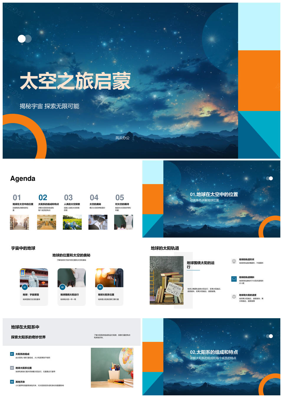 风云办公提供的太空之旅启蒙探索宇宙奥秘地球PPT模板,下载格式为pptx,一共23页,作品中文字及图均可以修改和编辑,图片更改请在作品中右键图片并更换,文字修改请直接点击文字进行修改。