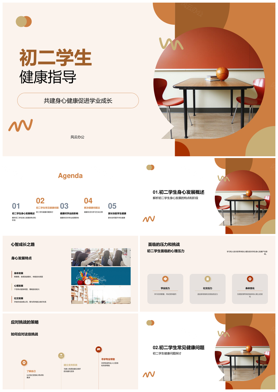 初二学生健康问题及身心发展应对指导PPT模板推荐