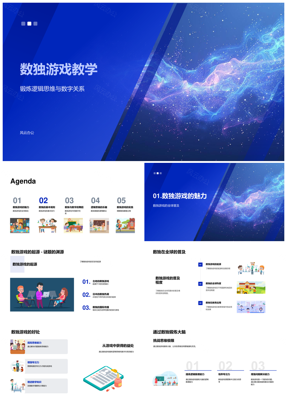 风云办公提供的数独9x9逻辑思维数字规则历史教学PPT模板,下载格式为pptx,一共28页,作品中文字及图均可以修改和编辑,图片更改请在作品中右键图片并更换,文字修改请直接点击文字进行修改。