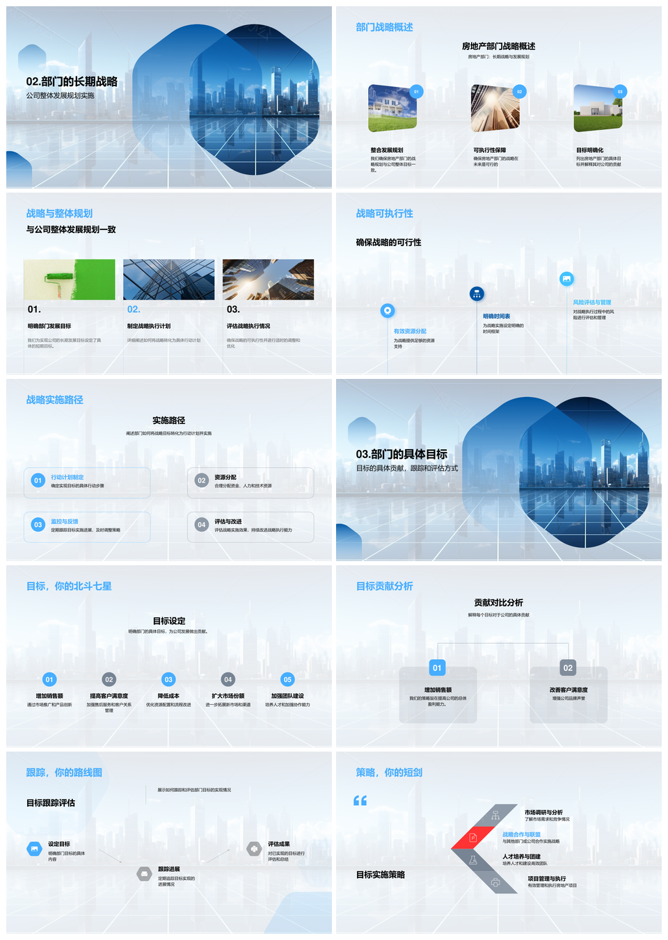 房地产部门经理董事会摩天大楼长期战略目标PPT模板推荐