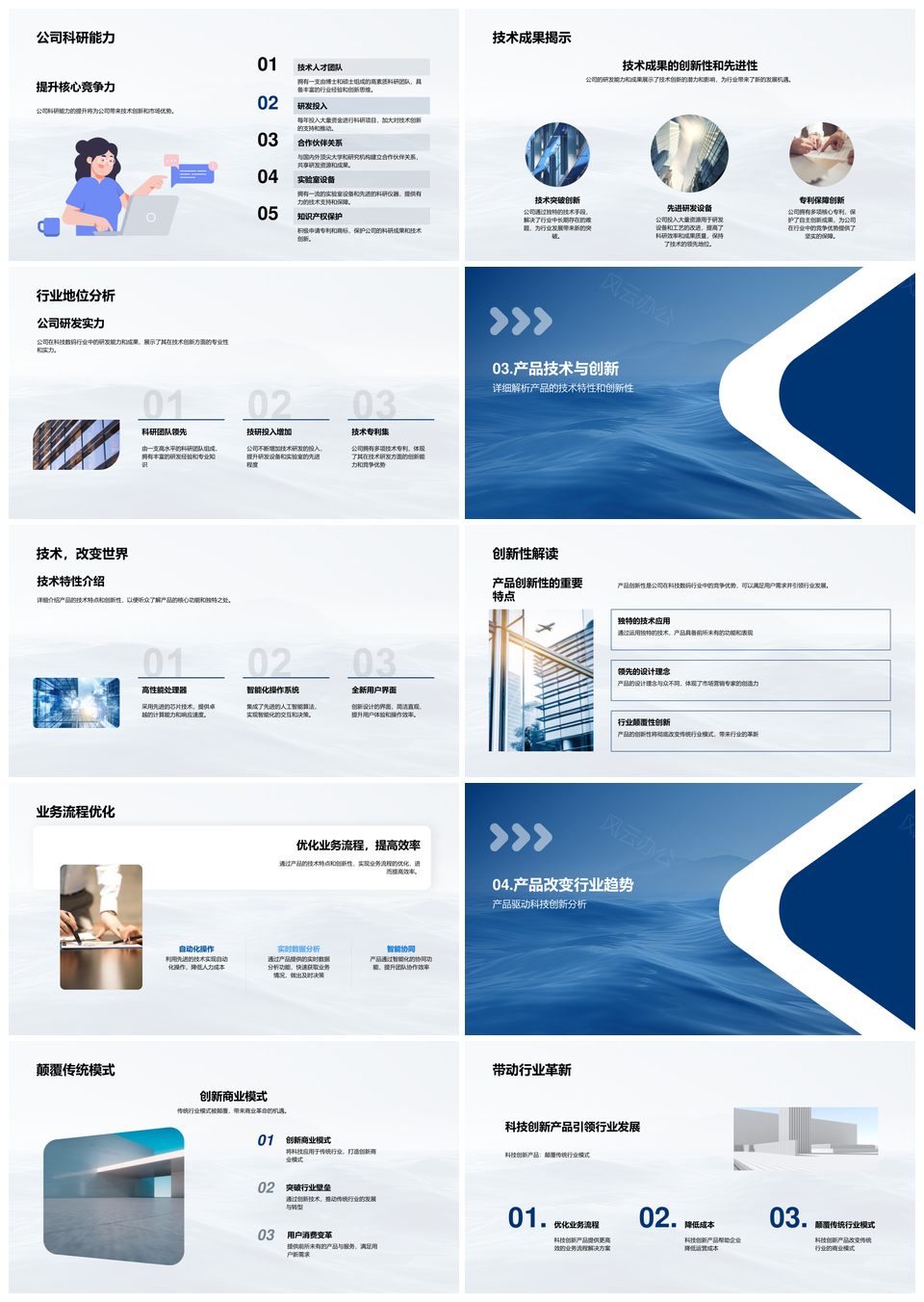 这是一张科技数码创新研发成果市场趋势技术展示PPT模板,包含科技、数码、创新、研发、成果、市场、趋势、技术、展示等主题内容,也可用作科技数码创新研发、数码创新研发成果、创新研发成果市场、研发成果市场趋势、成果市场趋势技术、市场趋势技术展示、科技数码创新、数码创新研发、创新研发成果、研发成果市场、成果市场趋势、市场趋势技术、趋势技术展示、科技数码、数码创新、创新研发、研发成果、成果市场、市场趋势、趋势技术、技术展示等PPT场景使用。 风云办公提供的科技数码创新研发成果市场趋势技术展示PPT模板,下载格式为pptx,一共23页,作品中文字及图均可以修改和编辑,图片更改请在作品中右键图片并更换,文字修改请直接点击文字进行修改。
