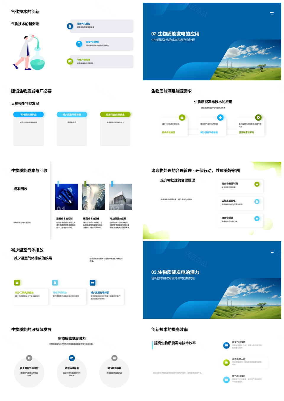 生物质发电技术创新应用与环保公益探索PPT模板推荐
