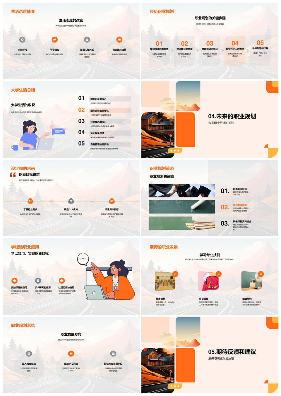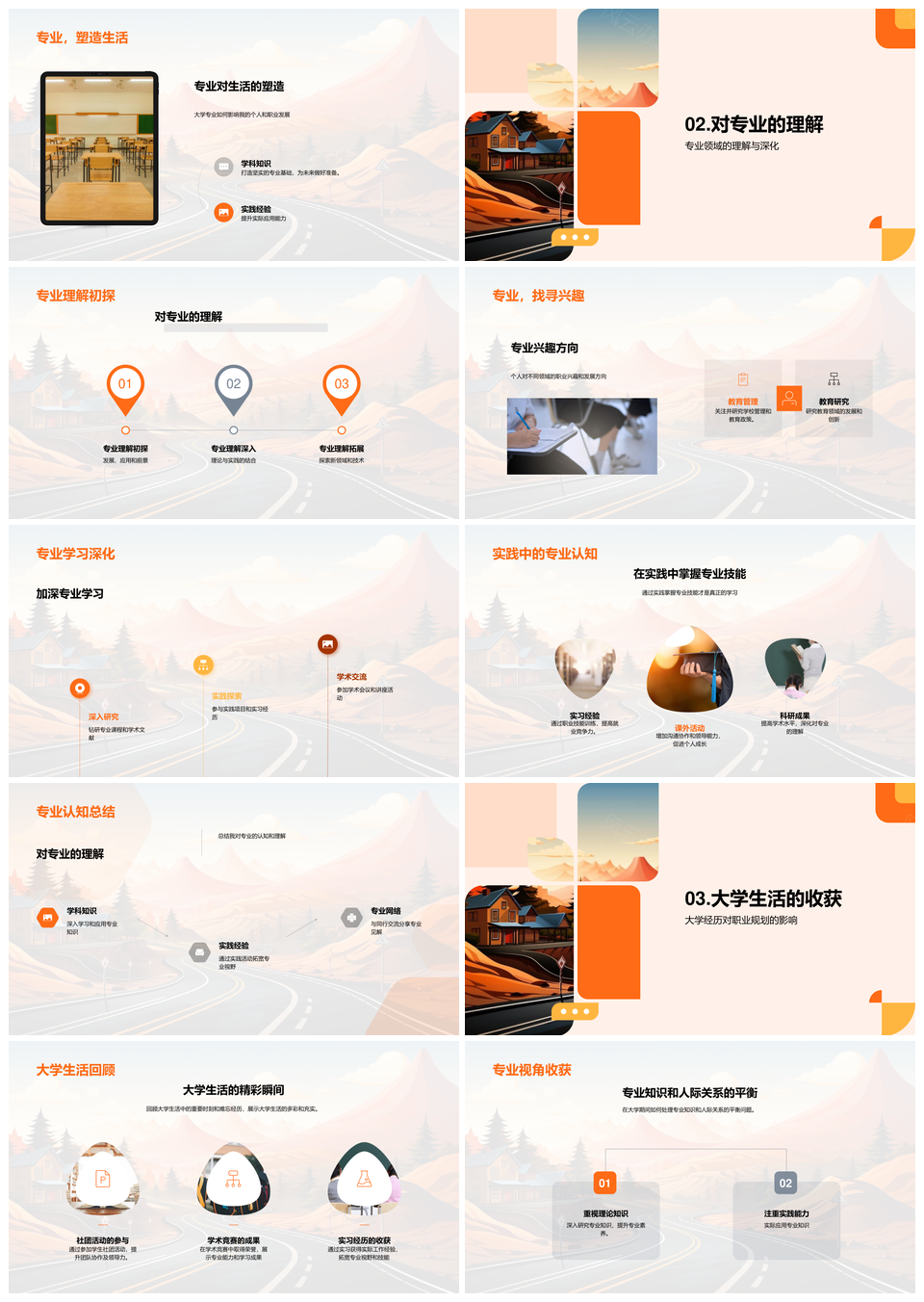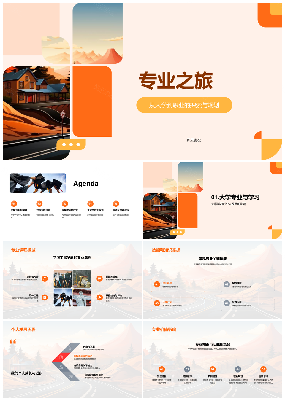 风云办公提供的专业之旅大学到职业探索规划专科答辩PPT模板,下载格式为pptx,一共31页,作品中文字及图均可以修改和编辑,图片更改请在作品中右键图片并更换,文字修改请直接点击文字进行修改。