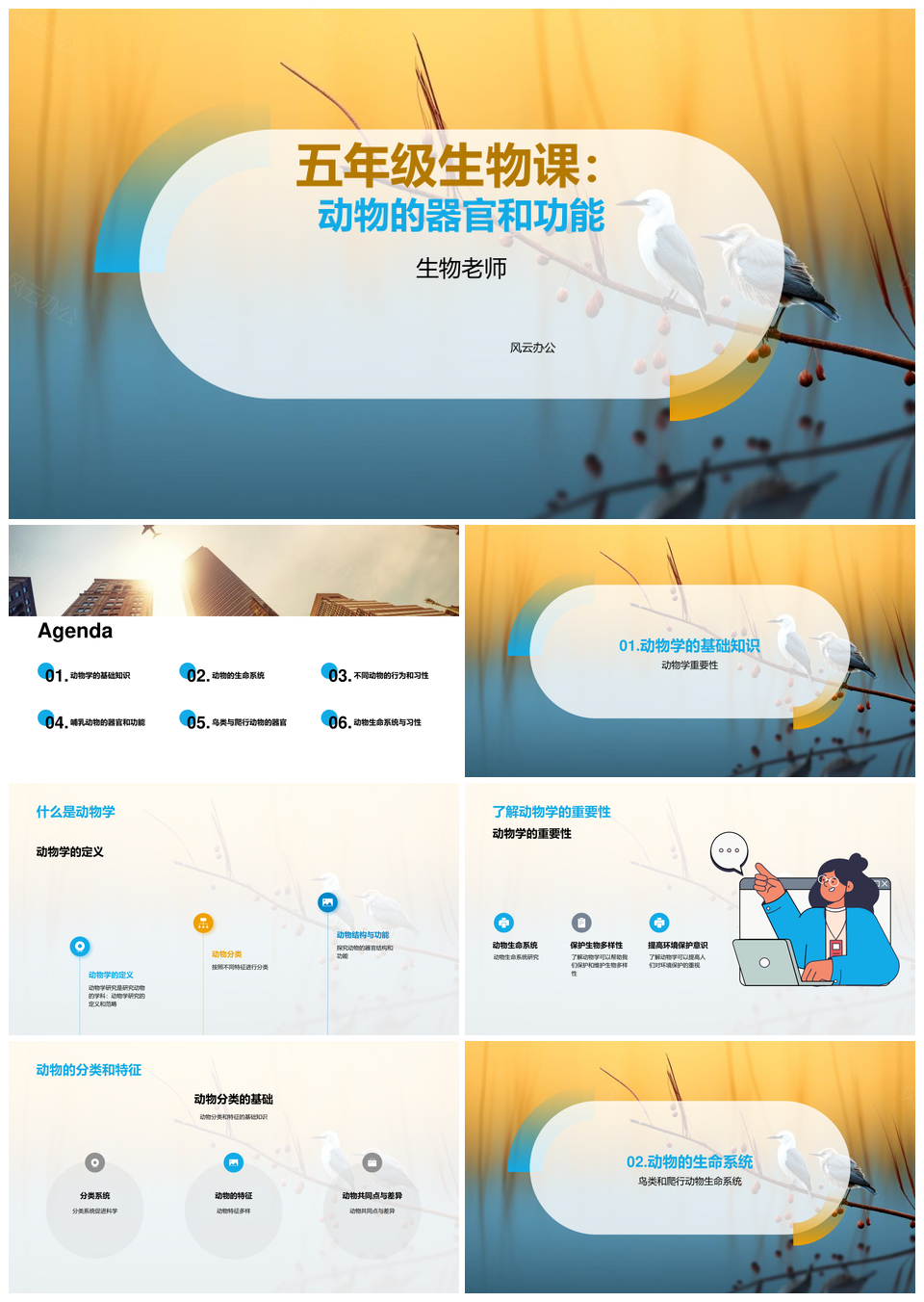 这是一张五年级生物课动物器官功能分类特征哺乳鸟类PPT模板,包含五年级、生物课、动物器官、功能、分类、特征、哺乳、鸟类等主题内容,也可用作五年级生物课动物器官功能、生物课动物器官功能分类、动物器官功能分类特征、器官功能分类特征哺乳、功能分类特征哺乳鸟类、动物器官分类特征哺乳、生物课器官功能分类、器官功能分类哺乳鸟类、五年级生物课动物、生物课动物器官、动物器官功能分类、器官功能分类特征、功能分类哺乳鸟类、动物分类特征哺乳、哺乳鸟类器官功能等PPT场景使用。 风云办公提供的五年级生物课动物器官功能分类特征哺乳鸟类PPT模板,下载格式为pptx,一共27页,作品中文字及图均可以修改和编辑,图片更改请在作品中右键图片并更换,文字修改请直接点击文字进行修改。