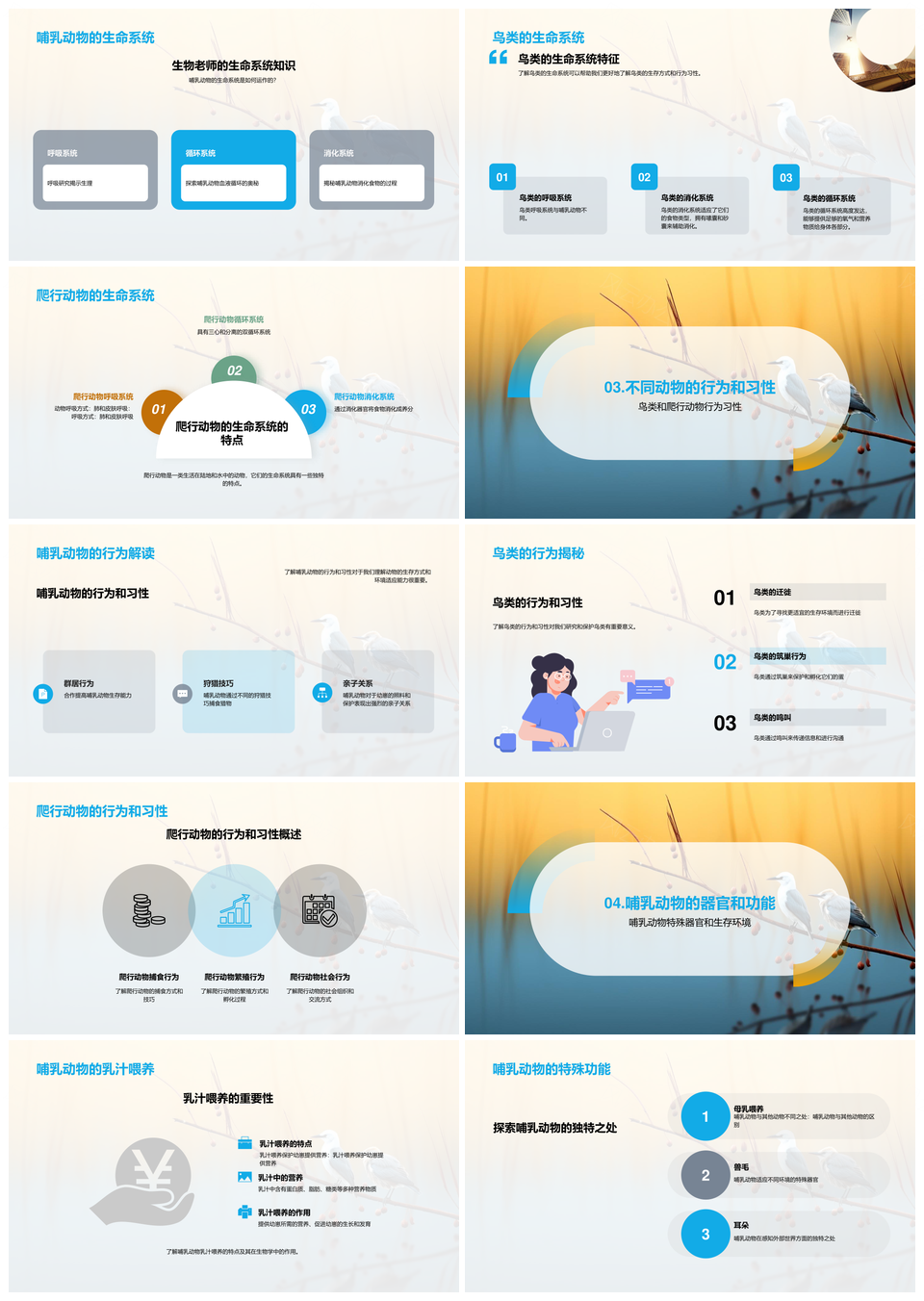 五年级生物课动物器官功能分类特征哺乳鸟类PPT模板推荐