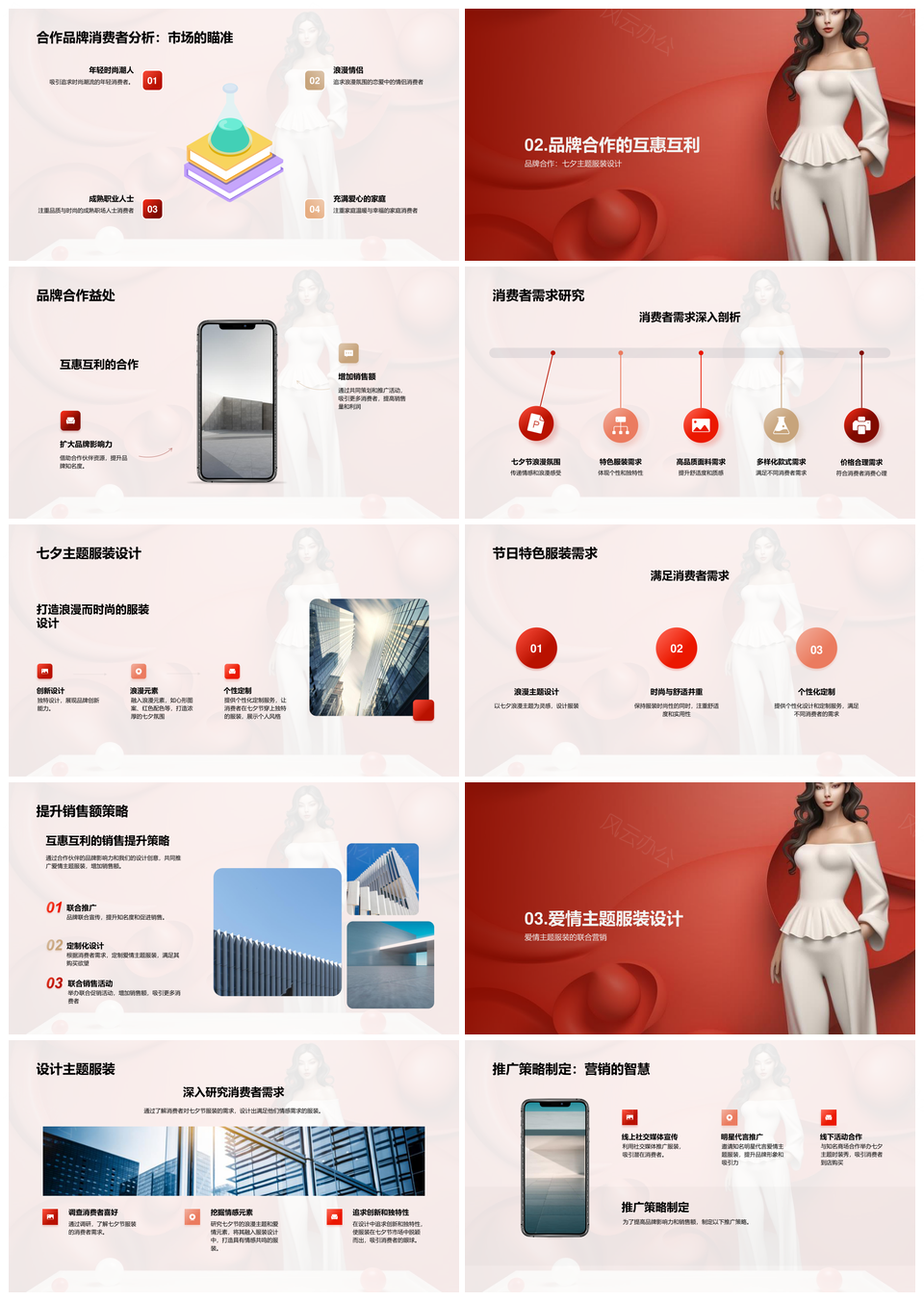 这是一张七夕主题服装品牌联合营销设计推广活动PPT模板,包含七夕、主题、服装品牌、联合、营销、设计、推广、活动等主题内容,也可用作七夕主题服装品牌、主题服装品牌联合、服装品牌联合营销、品牌联合营销设计、联合营销设计推广、营销设计推广活动、七夕主题服装、主题服装品牌、服装品牌联合、品牌联合营销、联合营销设计、营销设计推广、设计推广活动、七夕主题、主题服装等PPT场景使用。 风云办公提供的七夕主题服装品牌联合营销设计推广活动PPT模板,下载格式为pptx,一共33页,作品中文字及图均可以修改和编辑,图片更改请在作品中右键图片并更换,文字修改请直接点击文字进行修改。