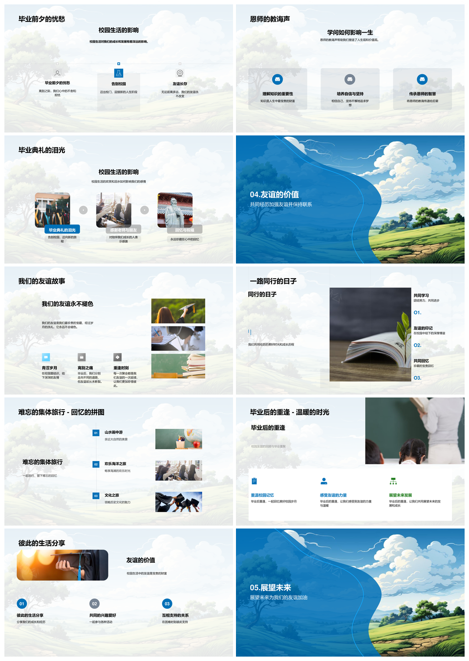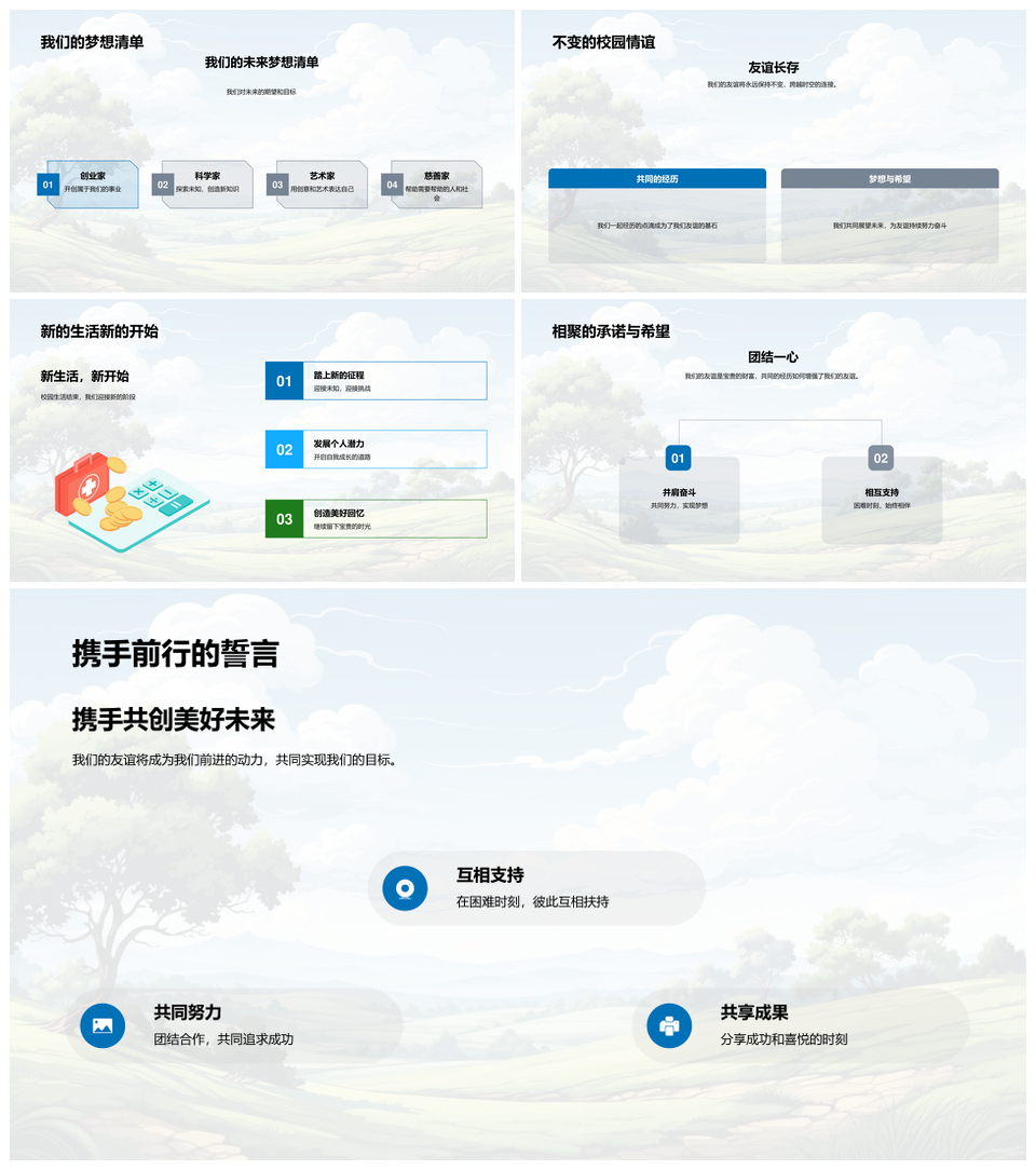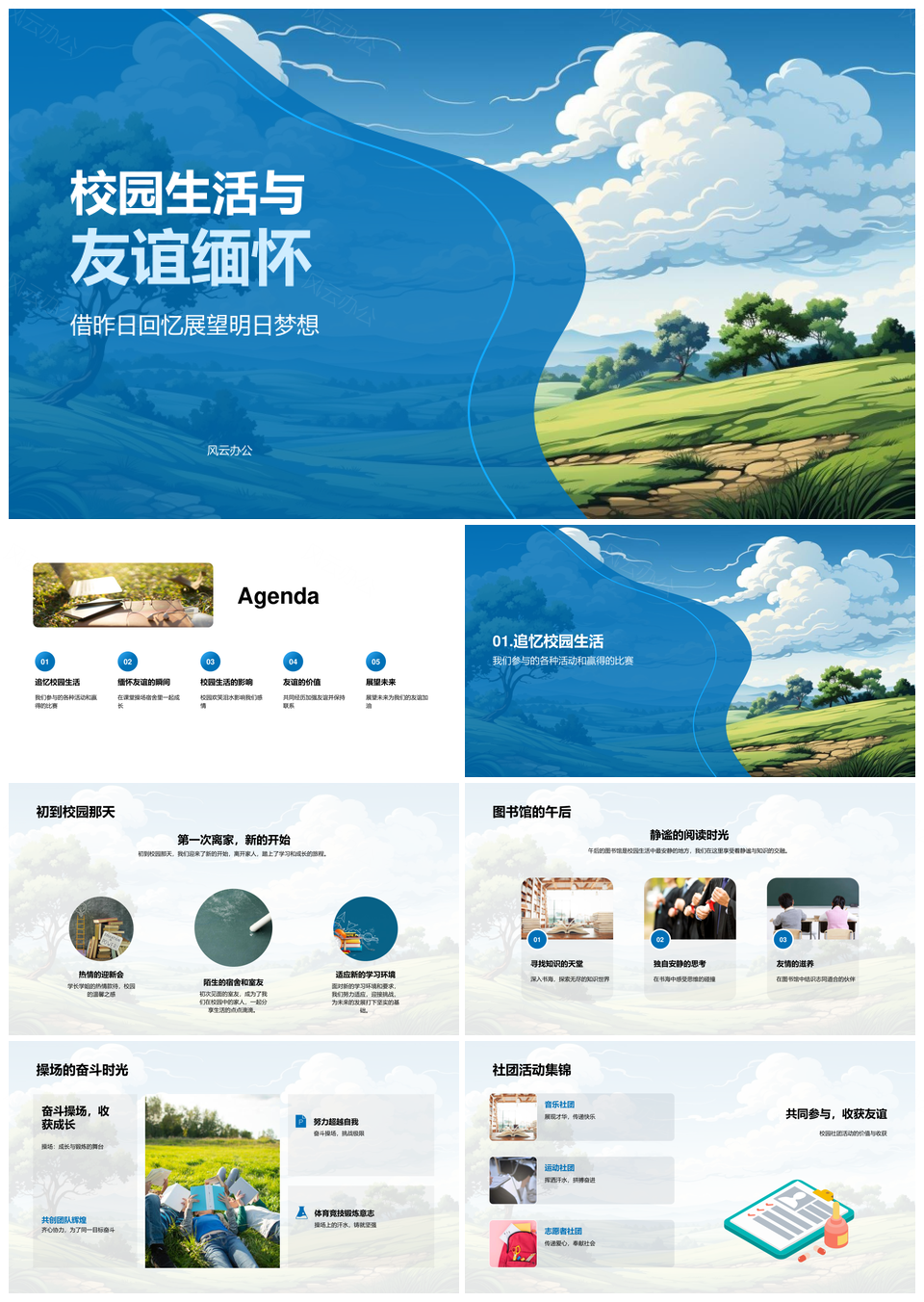 这是一张校园生活友谊学生活动比赛课堂操场宿舍风景PPT模板,包含校园生活、友谊、学生活动、比赛、课堂、操场、宿舍、风景等主题内容,也可用作校园生活友谊学生活动比赛、学生活动比赛课堂操场、课堂操场宿舍风景校园、宿舍风景校园生活友谊、友谊学生活动比赛课堂、活动比赛课堂操场宿舍、操场宿舍风景校园生活、校园生活课堂操场风景、生活友谊学生活动比赛、学生比赛课堂操场宿舍、课堂宿舍风景友谊学生、比赛操场宿舍风景校园、宿舍活动课堂操场风景、校园友谊活动比赛课堂、生活学生课堂宿舍风景等PPT场景使用。 风云办公提供的校园生活友谊学生活动比赛课堂操场宿舍风景PPT模板,下载格式为pptx,一共33页,作品中文字及图均可以修改和编辑,图片更改请在作品中右键图片并更换,文字修改请直接点击文字进行修改。