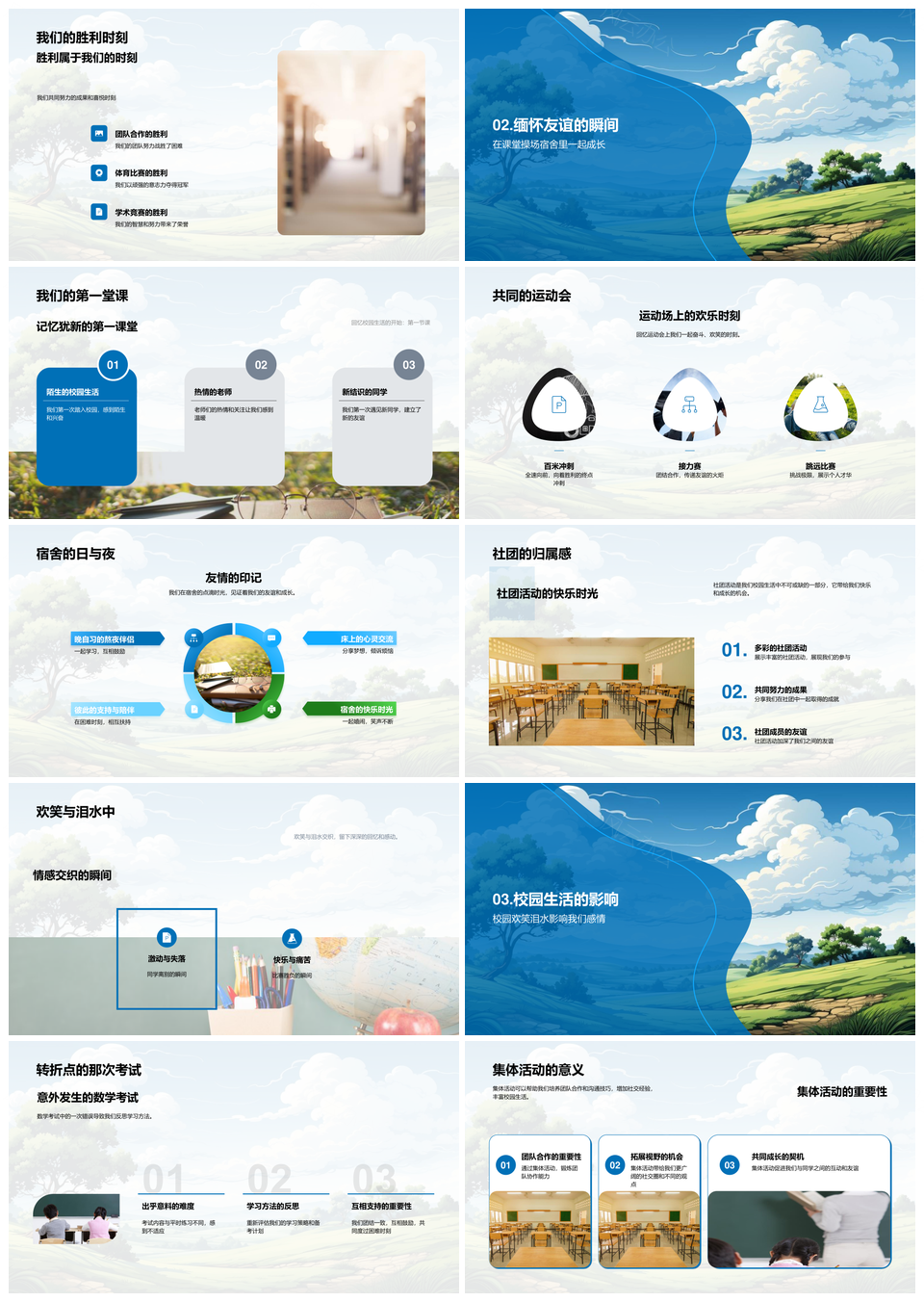校园生活友谊学生活动比赛课堂操场宿舍风景PPT模板推荐