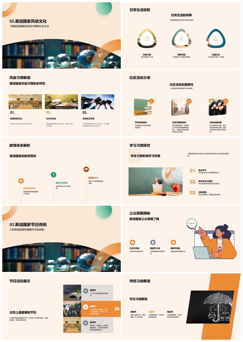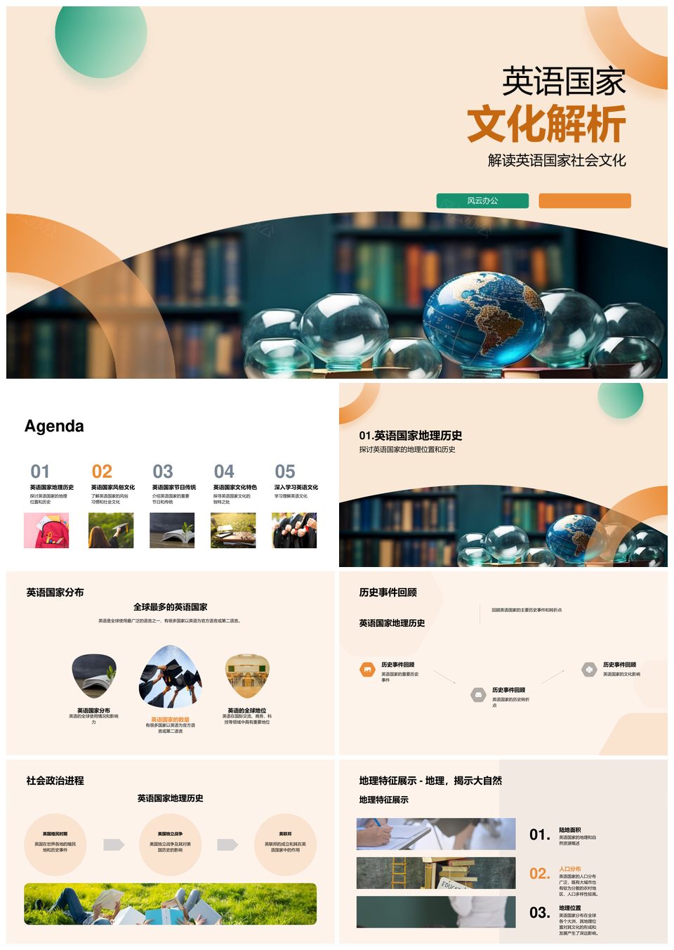 风云办公提供的英语国家社会地史教俗节庆权析PPT模板,下载格式为pptx,一共32页,作品中文字及图均可以修改和编辑,图片更改请在作品中右键图片并更换,文字修改请直接点击文字进行修改。