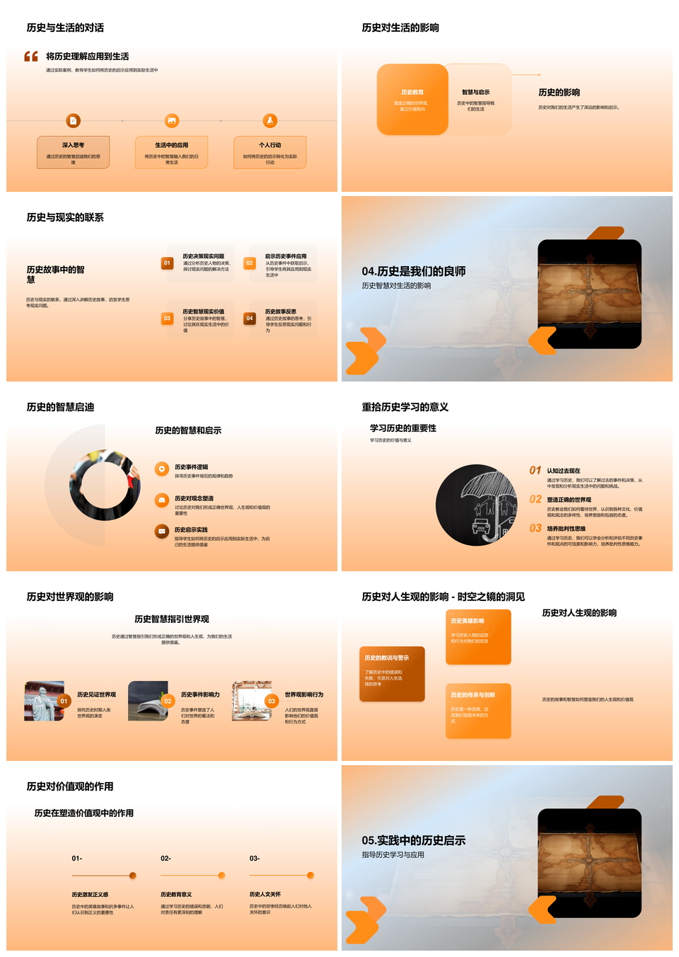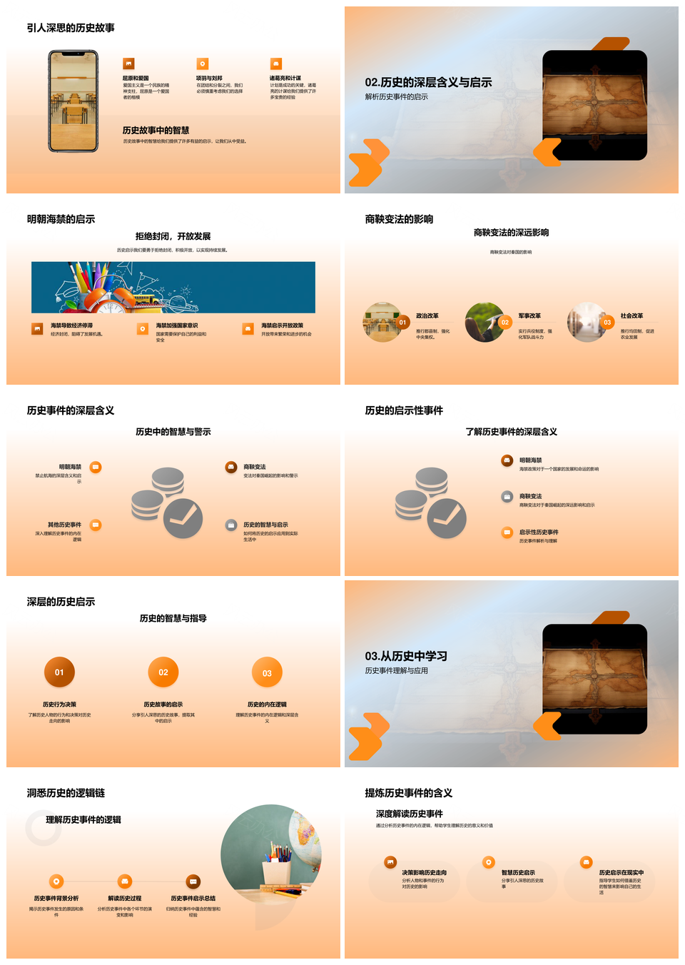 这是一张历史智慧启迪生活与教育PPT模板,包含历史、智慧、启迪、生活、教育等主题内容,也可用作历史智慧启迪生活、智慧启迪生活教育、历史智慧启迪、智慧启迪生活、启迪生活教育、历史智慧教育、智慧启迪教育、历史智慧、智慧启迪、启迪生活、生活教育、历史教育、智慧生活、智慧教育、启迪教育等PPT场景使用。 风云办公提供的历史智慧启迪生活与教育PPT模板,下载格式为pptx,一共33页,作品中文字及图均可以修改和编辑,图片更改请在作品中右键图片并更换,文字修改请直接点击文字进行修改。