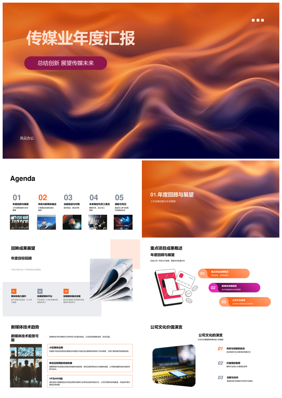 传媒年报新媒体技术文化成果竞争分析运营创新员工发展PPT模板