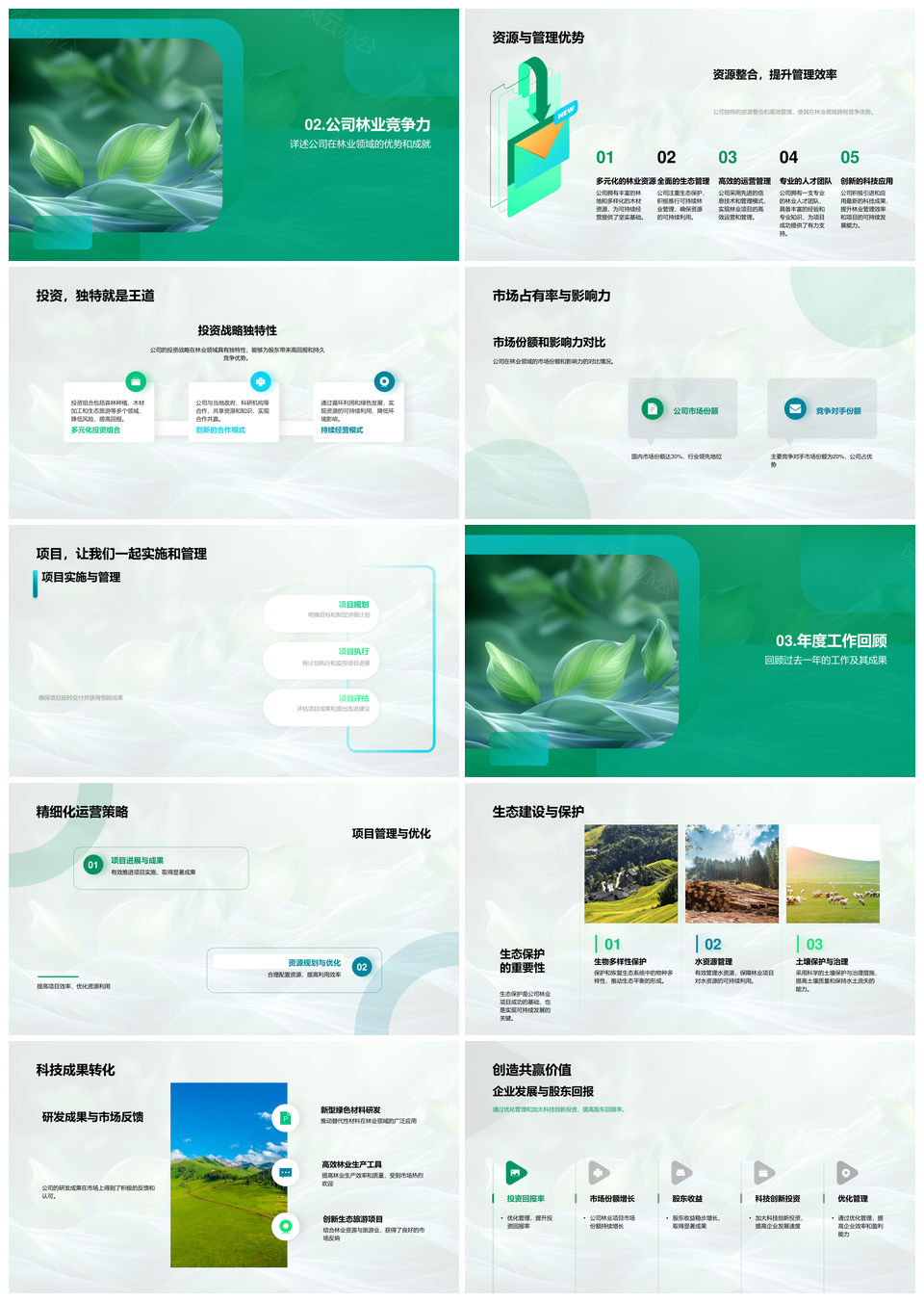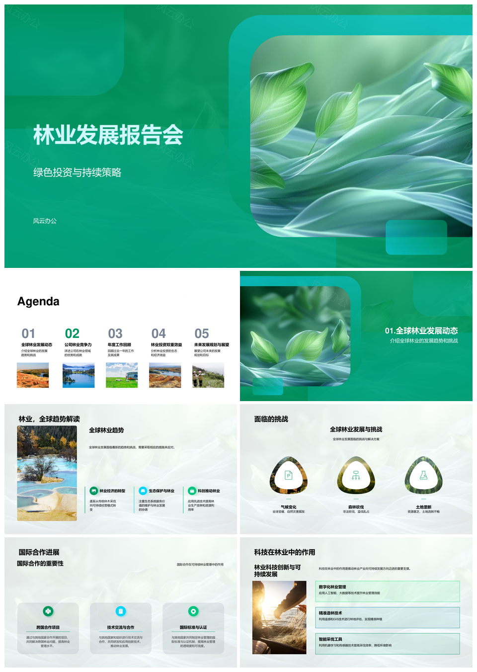 这是一张林业投资可持续管理全球趋势科技创新生态恢复市场环保责任PPT模板,包含林业投资、可持续、管理、全球趋势、科技创新、生态恢复、市场、环保责任等主题内容,也可用作林业投资可持续管理、全球趋势科技创新生态恢复市场、科技创新生态恢复环保责任、可持续管理全球趋势科技、林业投资全球趋势创新、生态恢复市场环保责任、可持续管理市场环保、全球趋势科技创新、林业投资生态恢复、科技创新环保责任、可持续管理全球趋势、生态恢复市场环保、市场环保责任、科技创新生态恢复、可持续管理环保责任等PPT场景使用。 风云办公提供的林业投资可持续管理全球趋势科技创新生态恢复市场环保责任PPT模板,下载格式为pptx,一共28页,作品中文字及图均可以修改和编辑,图片更改请在作品中右键图片并更换,文字修改请直接点击文字进行修改。
