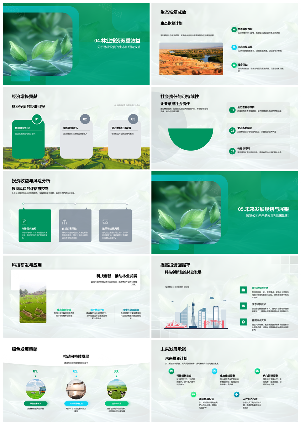 林业投资可持续管理全球趋势科技创新生态恢复市场环保责任PPT模板推荐