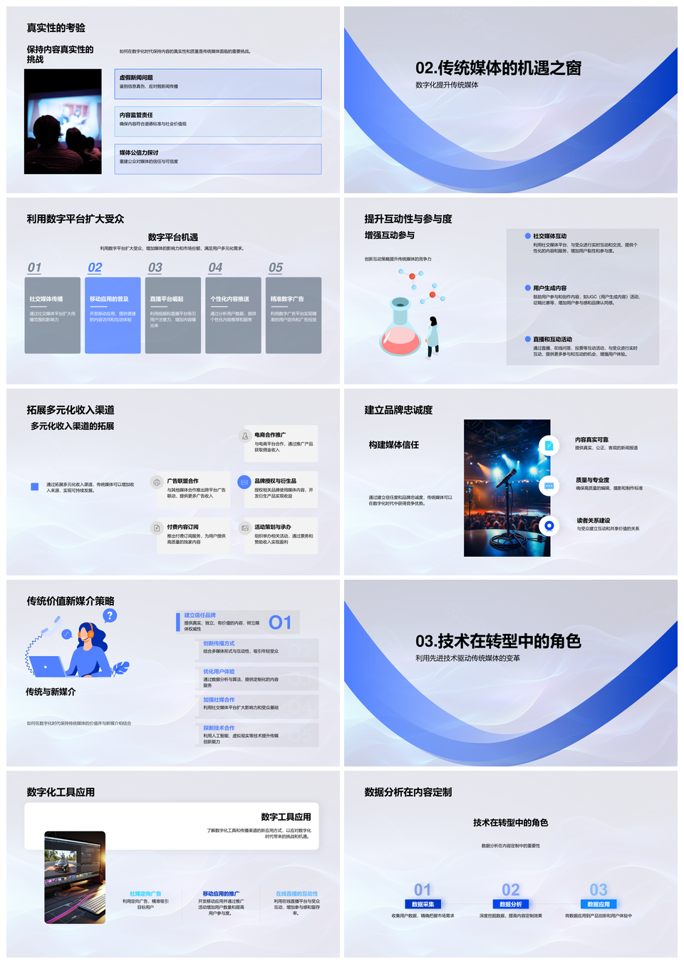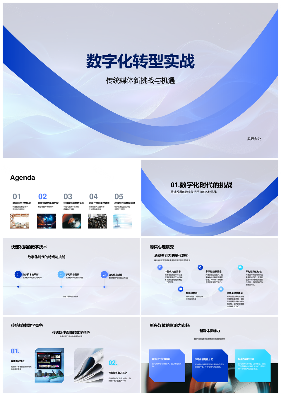 风云办公提供的数字化转型驱动媒体转型与消费者行为PPT模板,下载格式为pptx,一共33页,作品中文字及图均可以修改和编辑,图片更改请在作品中右键图片并更换,文字修改请直接点击文字进行修改。
