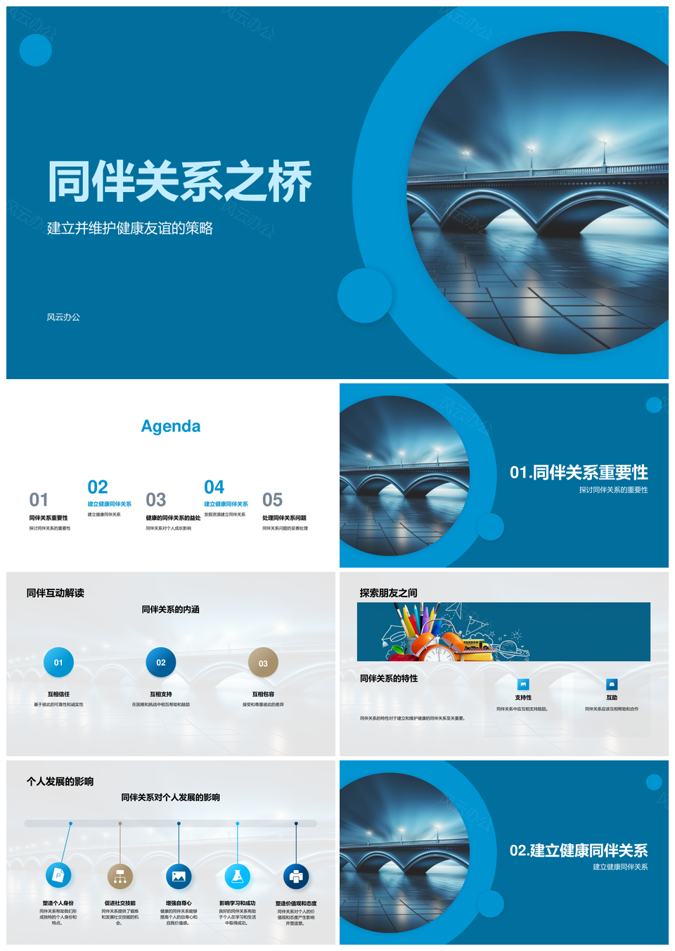 风云办公提供的心理健康教育搭建同伴关系桥梁PPT模板,下载格式为pptx,一共23页,作品中文字及图均可以修改和编辑,图片更改请在作品中右键图片并更换,文字修改请直接点击文字进行修改。