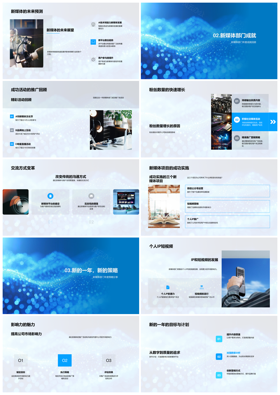 这是一张新媒体部门年报发展历程未来趋势PPT模板,包含新媒体部门、年报、发展历程、未来趋势等主题内容,也可用作新媒体部门年报发展历程未来趋势、新媒体部门年报发展历程、部门年报发展历程未来趋势、新媒体部门发展历程未来趋势、新媒体年报发展历程未来趋势、发展历程未来趋势、新媒体部门年报、部门年报发展历程、年报发展历程未来趋势、新媒体发展历程、部门发展历程、新媒体年报、年报发展历程、发展历程未来、未来趋势等PPT场景使用。