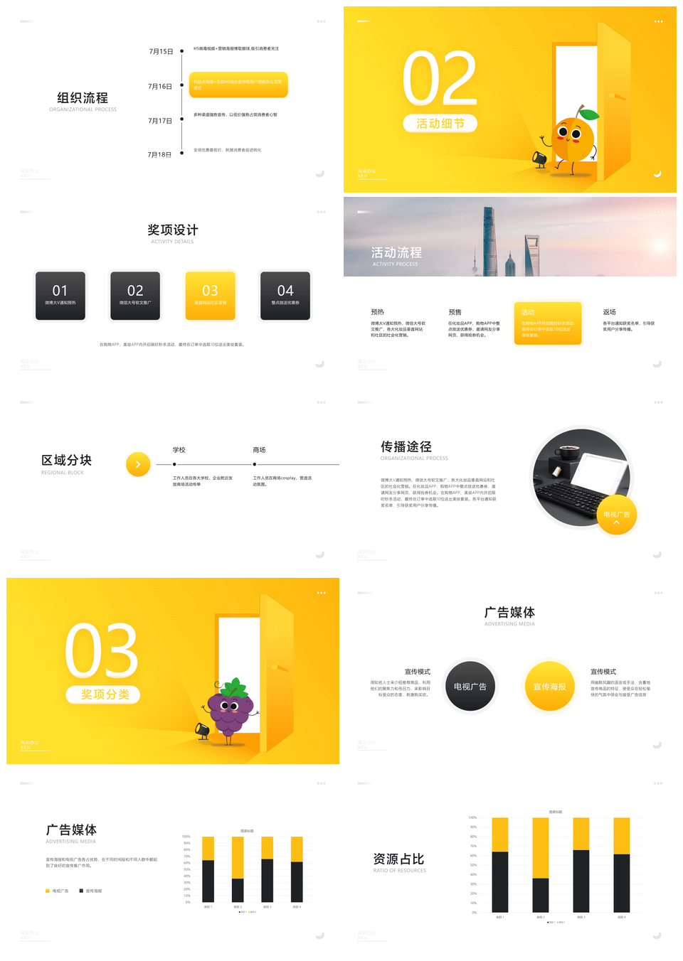 黄色简约企业活动策划宣传推广流程布置方案PPT模板推荐