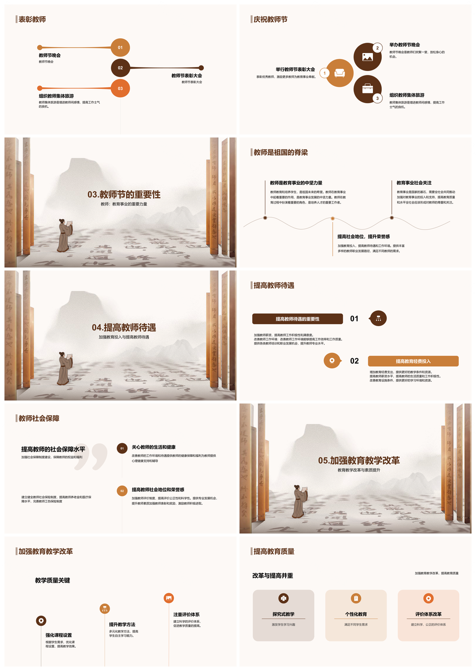 这是一张2025黄色古风教师节教书育人山水书简庆祝PPT模板,包含2025、黄色、古风、教师节、教书育人、山水、书简、庆祝等主题内容,也可用作2025黄色古风教师节、黄色古风教师节庆祝、古风教师节教书育人、教师节教书育人山水、教书育人山水书简、2025黄色山水书简、黄色古风山水书简、2025古风教师节庆祝、教师节山水书简庆祝、古风山水书简庆祝、黄色教师节教书育人、教师节教书育人书简、山水书简庆祝、教书育人庆祝、古风书简庆祝等PPT场景使用。 风云办公提供的2025黄色古风教师节教书育人山水书简庆祝PPT模板,下载格式为pptx,一共20页,作品中文字及图均可以修改和编辑,图片更改请在作品中右键图片并更换,文字修改请直接点击文字进行修改。