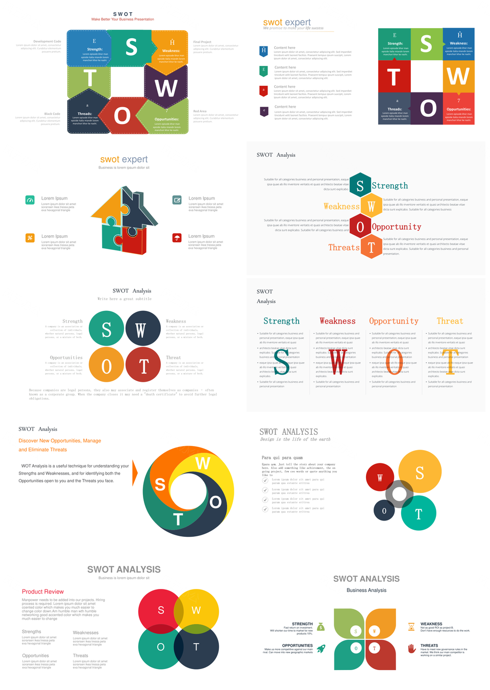 彩色SWOT分析PPT模板