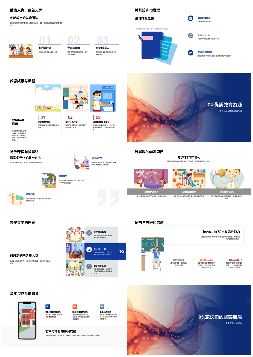 这是一张幼教环境理念优质教育设施团队校园风景活动生活展示PPT模板,包含幼教环境、理念、优质教育、设施、团队、校园风景、活动、生活、展示等主题内容,也可用作幼教环境理念优质教育、环境理念优质教育设施、优质教育设施团队校园、教育设施团队校园风景、设施团队校园风景活动、团队校园风景活动生活、校园风景活动生活展示、幼教环境理念优质、环境理念优质教育、理念优质教育设施、优质教育设施团队、教育设施团队校园、设施团队校园风景、团队校园风景活动、校园风景活动生活等PPT场景使用。 风云办公提供的幼教环境理念优质教育设施团队校园风景活动生活展示PPT模板,下载格式为pptx,一共33页,作品中文字及图均可以修改和编辑,图片更改请在作品中右键图片并更换,文字修改请直接点击文字进行修改。