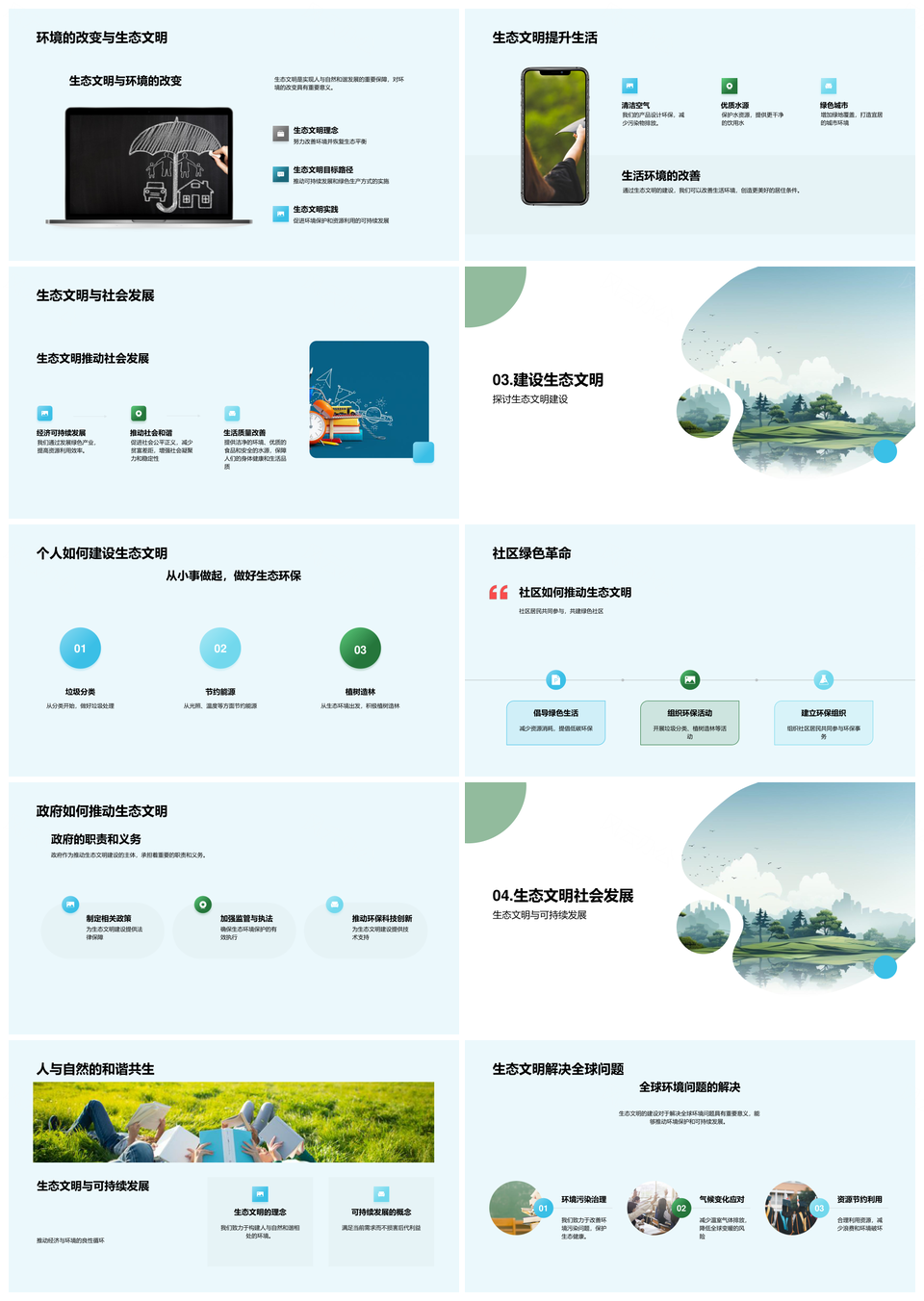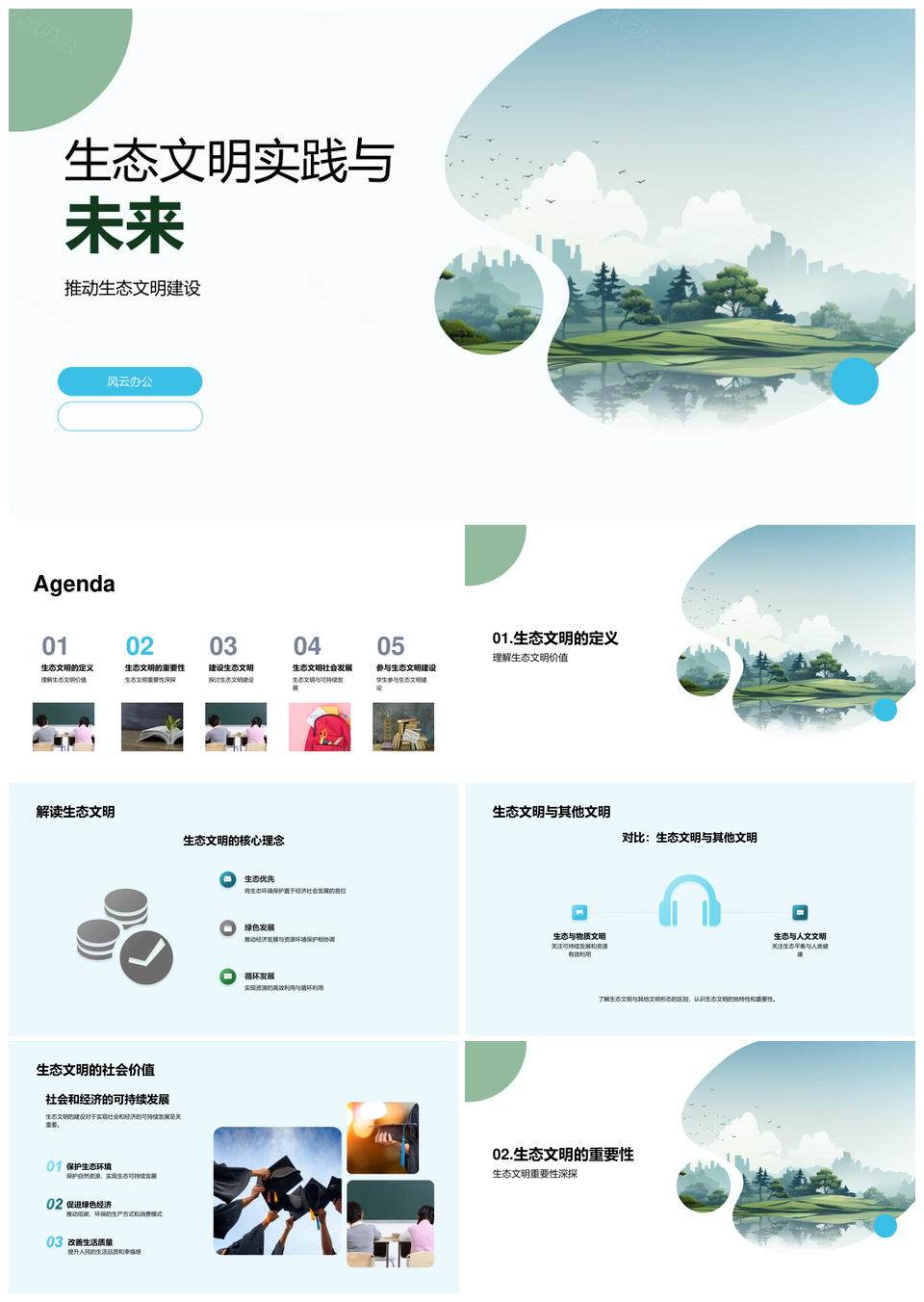 风云办公提供的生态文明教育推动绿色未来建设PPT模板,下载格式为pptx,一共23页,作品中文字及图均可以修改和编辑,图片更改请在作品中右键图片并更换,文字修改请直接点击文字进行修改。