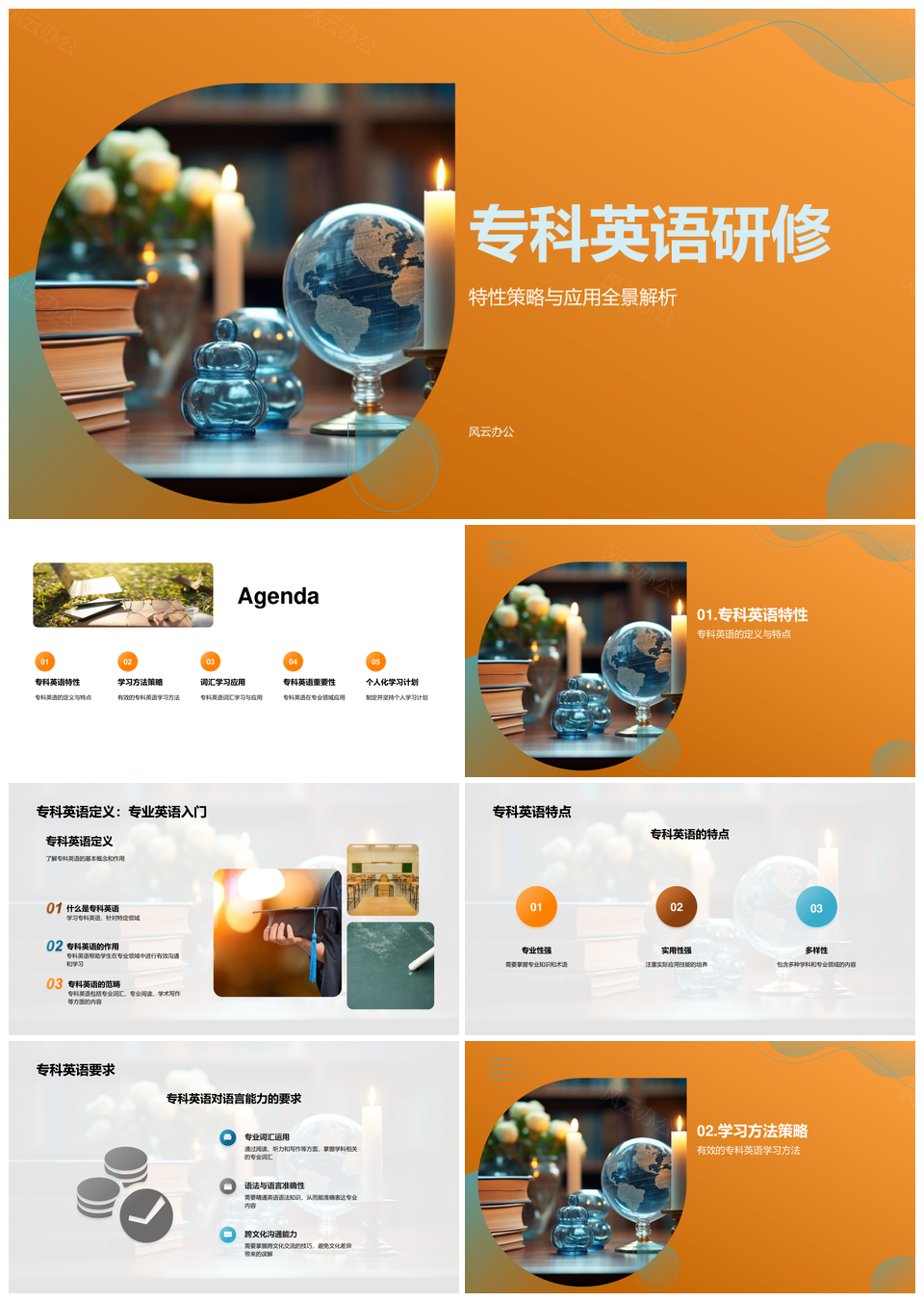 这是一张专科英语研修策略学习专业词汇应用提升竞争力PPT模板,包含专科英语、研修策略、学习、专业词汇、应用、提升、竞争力等主题内容,也可用作专科英语研修策略、策略学习专业词汇、学习专业词汇应用、词汇应用提升竞争力、专科英语研修、英语研修策略、学习专业词汇、专业词汇应用、应用提升竞争力、专科英语、英语研修、研修策略、策略学习、学习专业、专业词汇等PPT场景使用。 风云办公提供的专科英语研修策略学习专业词汇应用提升竞争力PPT模板,下载格式为pptx,一共23页,作品中文字及图均可以修改和编辑,图片更改请在作品中右键图片并更换,文字修改请直接点击文字进行修改。
