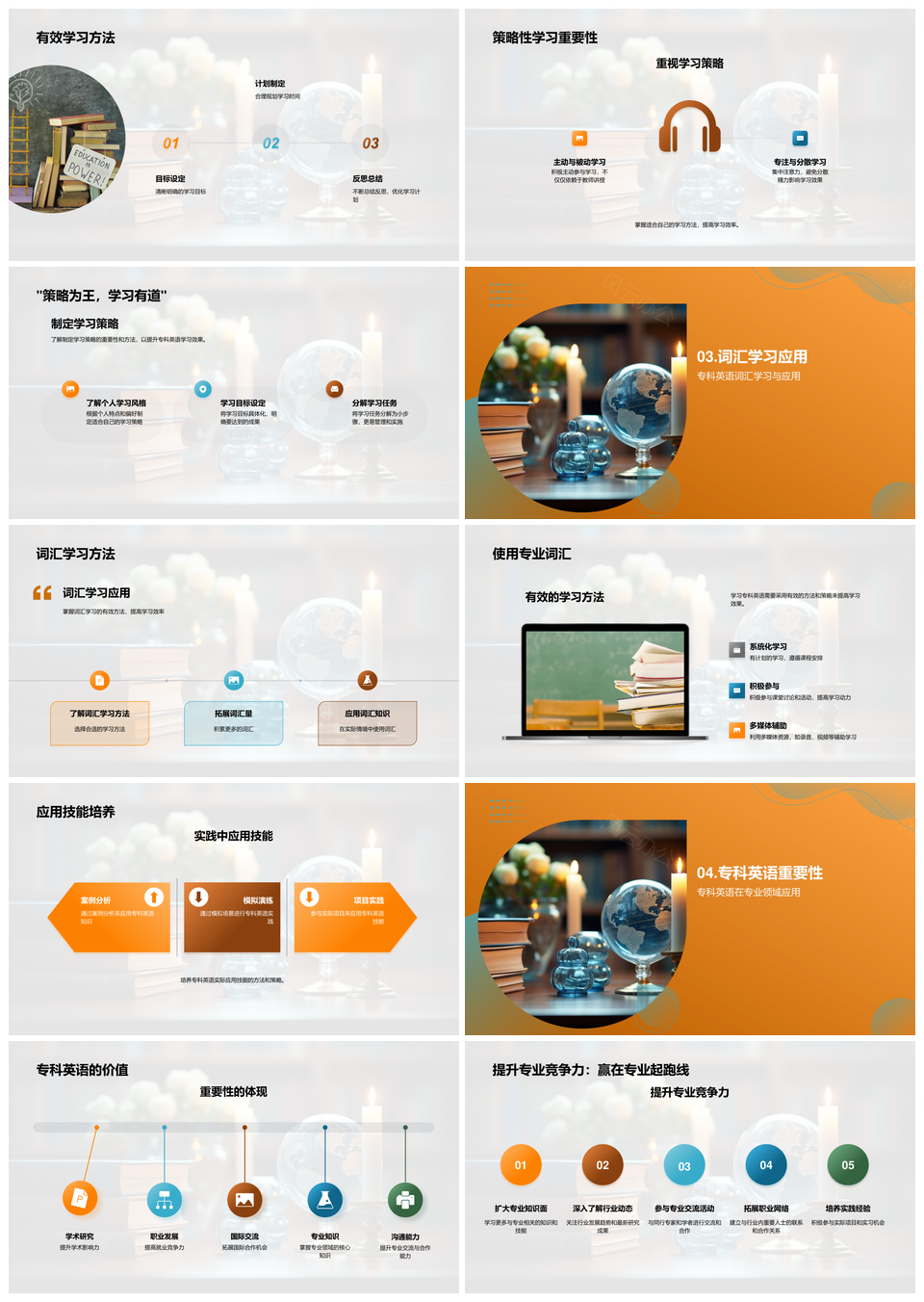 专科英语研修策略学习专业词汇应用提升竞争力PPT模板推荐
